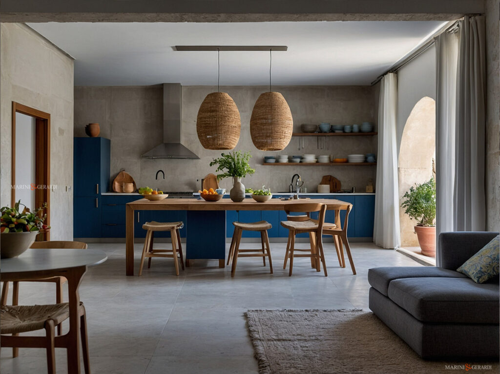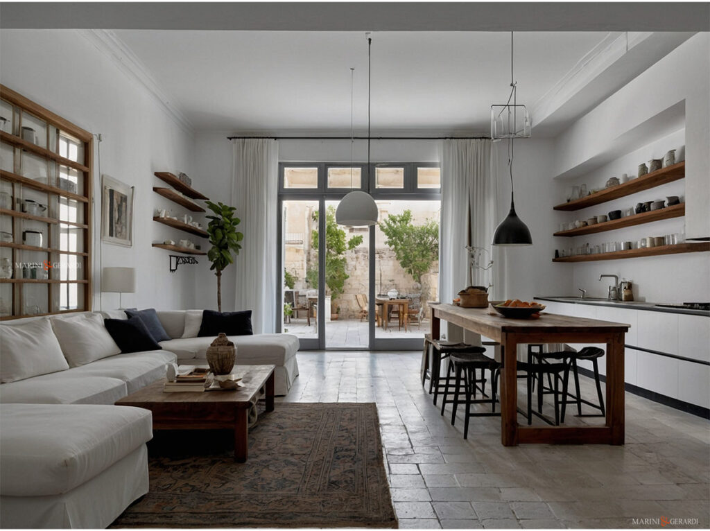 - Privacy e oscuramento: Se la tua cucina salotto si affaccia su una strada o un’area molto frequentata, potresti preferire tende che offrano maggiore privacy e oscuramento. Opta per materiali più pesanti, come cotone o tessuti a trama più fitta, che impediranno la visibilità dall’esterno e ridurranno l’ingresso della luce solare diretta quando necessario.