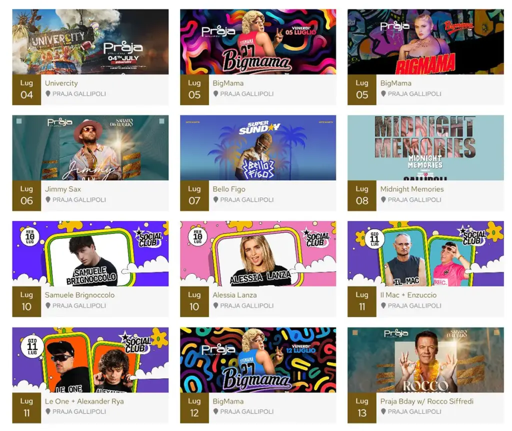Il Praja è una delle discoteche più famose di Gallipoli e un punto di riferimento per la nightlife salentina. Situata nella zona di Baia Verde, questa discoteca all’aperto è celebre per i suoi dj set con artisti di fama internazionale, le serate a tema e l’atmosfera festosa. Il Praja offre anche un’area VIP per chi desidera un’esperienza esclusiva e raffinata.