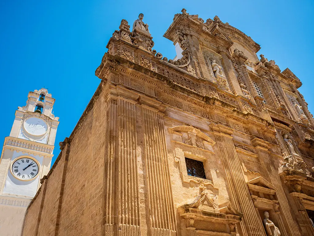Nel cuore del centro storico, in Piazza Duomo, si erge la Cattedrale di Sant’Agata. Costruita nel XVII secolo, la cattedrale è uno degli esempi più rappresentativi del barocco leccese. La facciata in pietra leccese, riccamente decorata con statue e bassorilievi, anticipa la magnificenza degli interni, dove si possono ammirare affreschi, tele di artisti locali e un pregevole soffitto a cassettoni. La cattedrale è dedicata a Sant’Agata, patrona della città, e rappresenta un luogo di profonda spiritualità e arte.