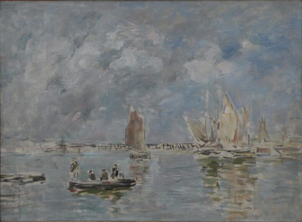 - Eugène Boudin, il poeta dei cieli, ci fa sentire la brezza marina sul volto. “Barche e frangiflutti” è un inno alla bellezza mutevole del mare, un attimo di eternità sospeso sulla tela. I suoi cieli immensi, con le nuvole che si rincorrono, ci ricordano la nostra piccolezza di fronte alla natura.