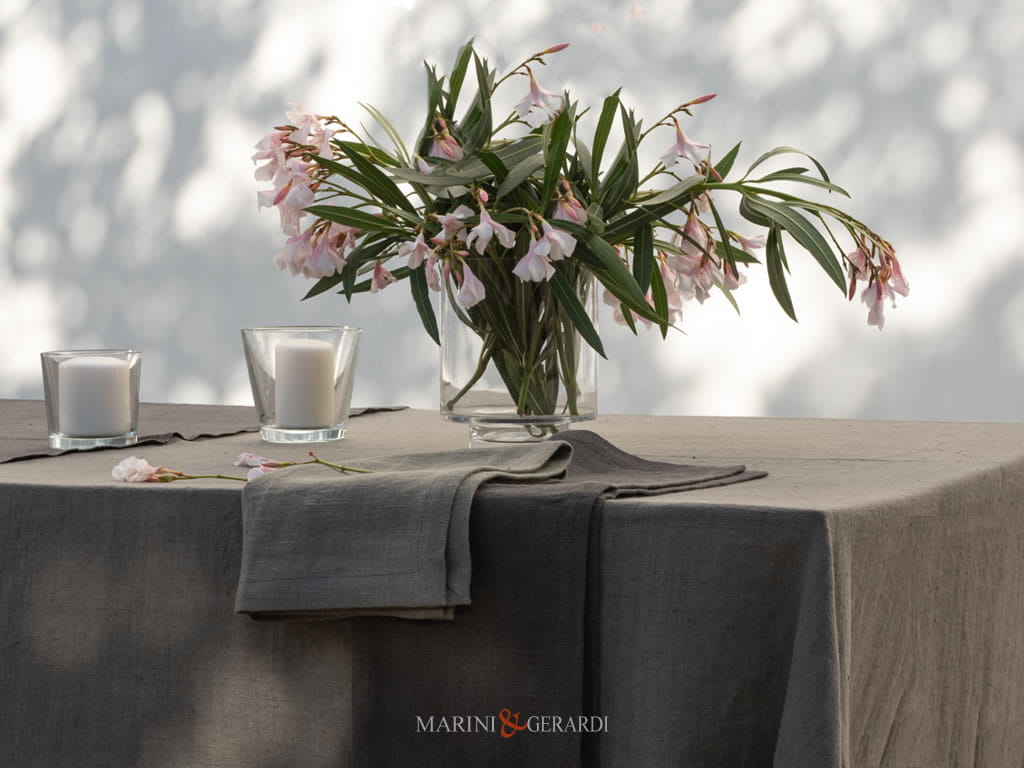 Tessuto 100% LINO a trama fitta ben strutturato per una piacevole sensazione al tatto. Cucita nel nostro laboratorio con finitura tradizionale e bordo semplice doppiato di almeno 2,5 cm. | I colori selezionati per voi rendono questo prodotto unico.