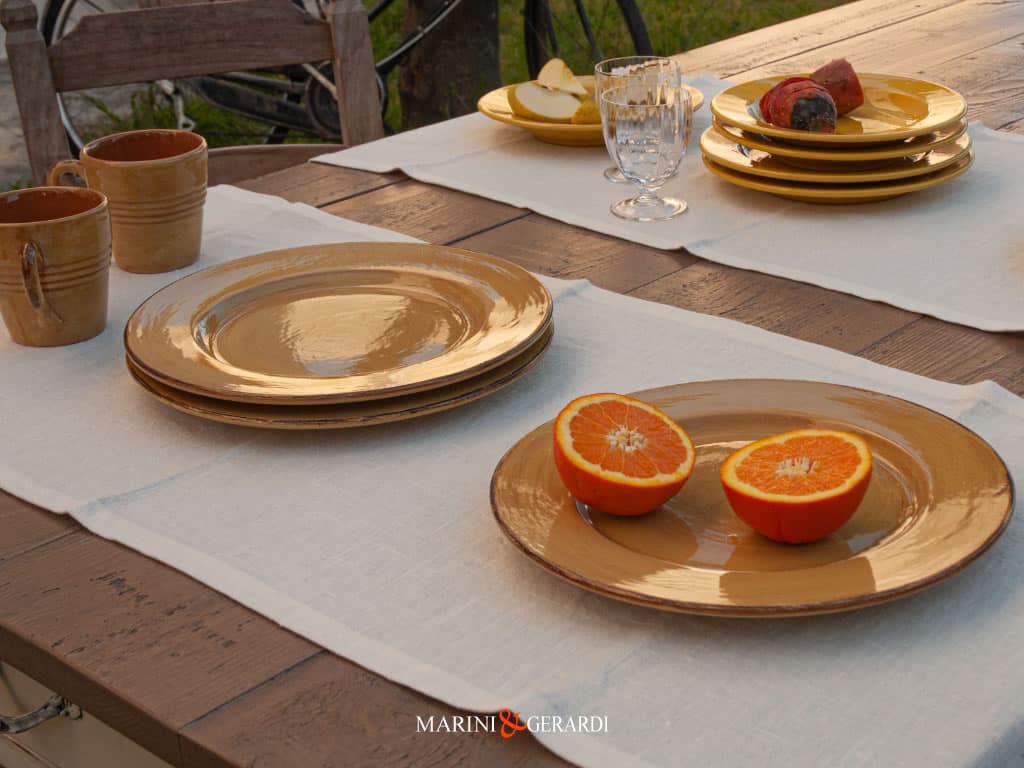 - Tovaglia Alternativa: Se desideri una mise en place originale ma elegante, puoi sostituire la tradizionale tovaglia con un runner da tavolo. Questa scelta conferisce al tavolo un aspetto moderno e sofisticato.