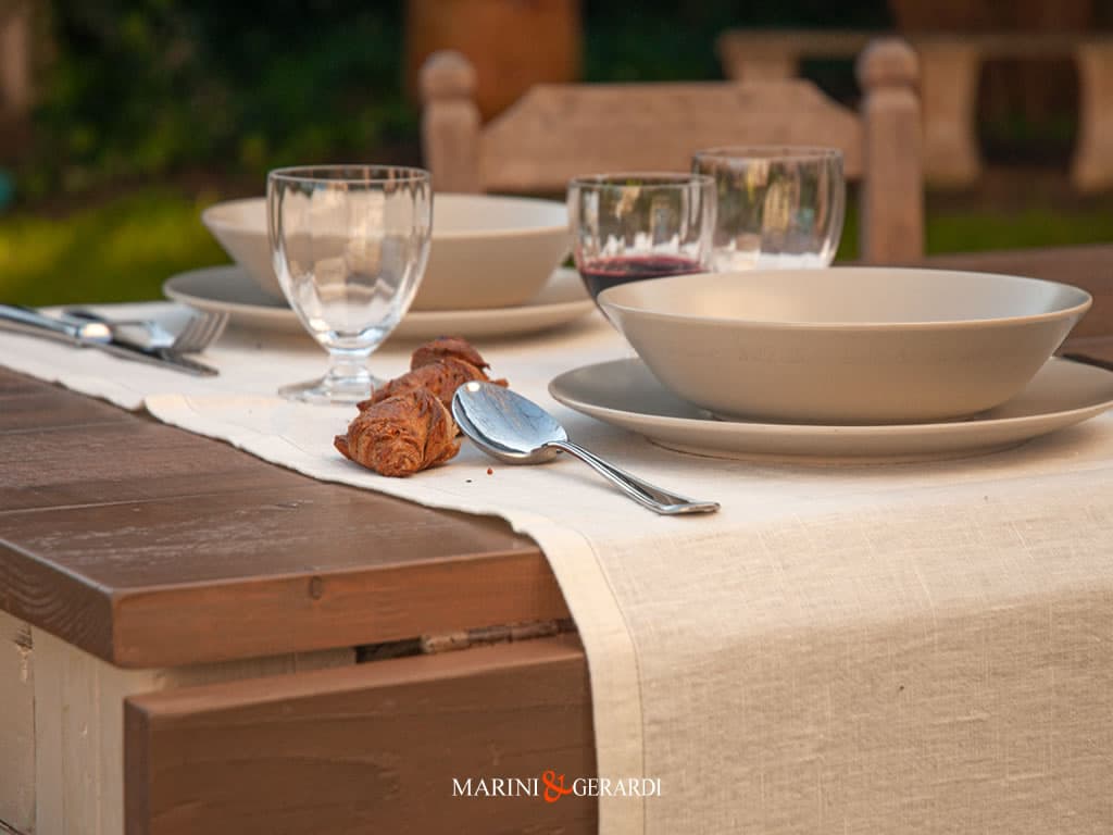 Runner Tavolo realizzato in tessuto di puro lino, cuciti sartorialmente nel nostro laboratorio al momento dell’ordine. Il Runner Barcellona sono fatti artigianalmente come si deve per fare la differenza, perfetta e adatta per ogni occasione.