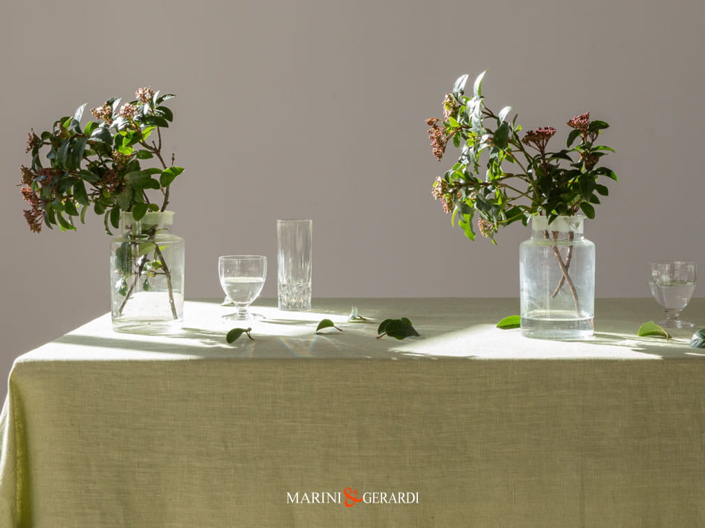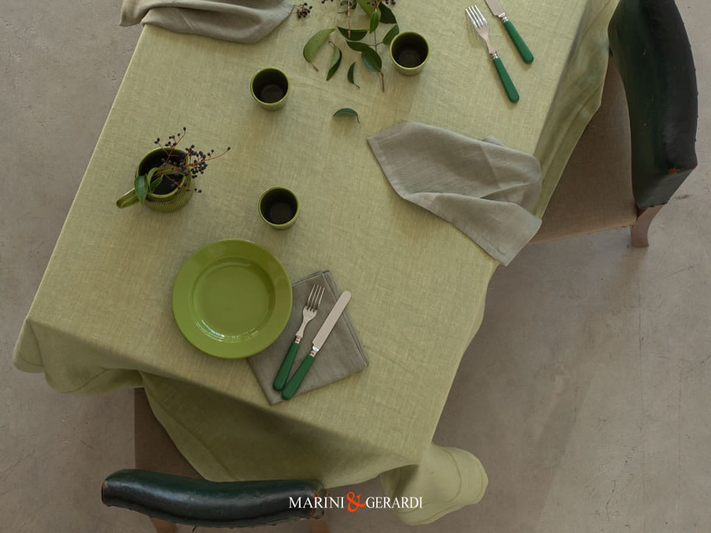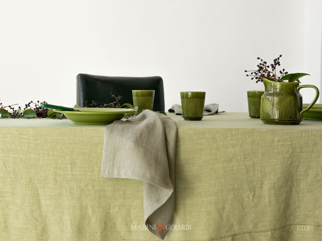 Tovaglie Moderne Eleganti in Lino con 19 Colori sempre disponibili: Pistacchio | Verde Marcio | Glicine | Salmone | Caffè Latte | Tabacco | Bianco | Bianco Naturale | Avio | Cielo | Grigio Antracite | Cenere | Pannocchia | Zucca | Denim | Malva | Corda