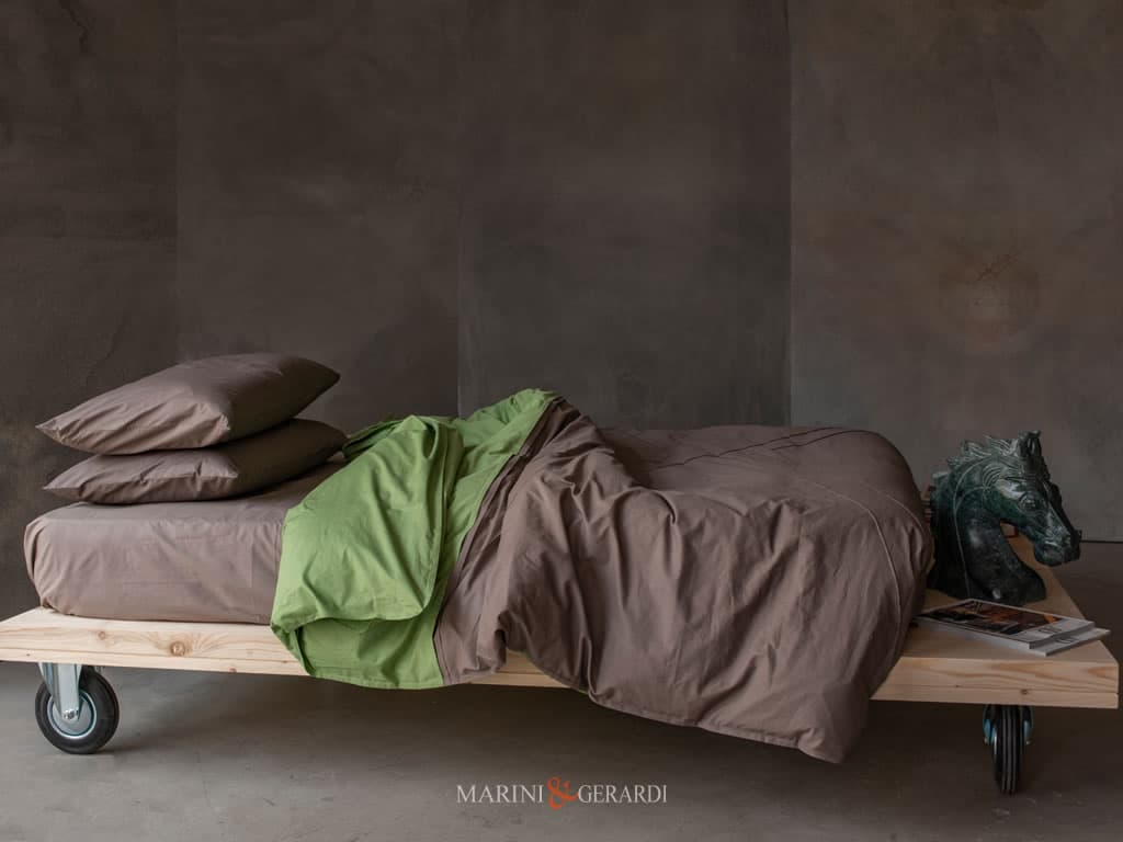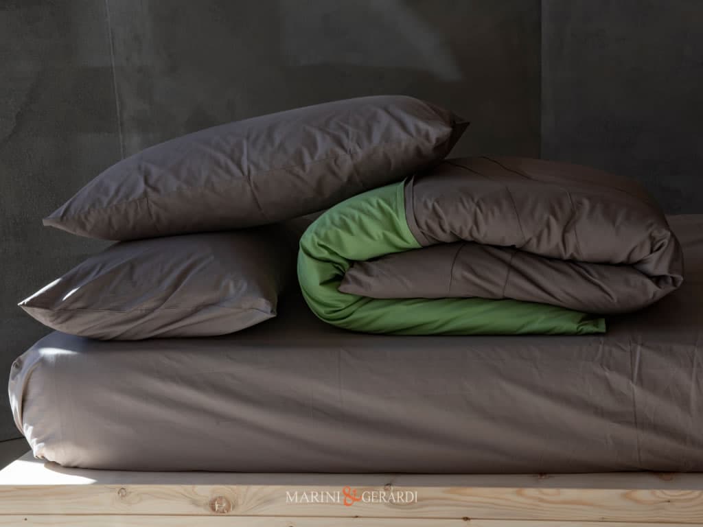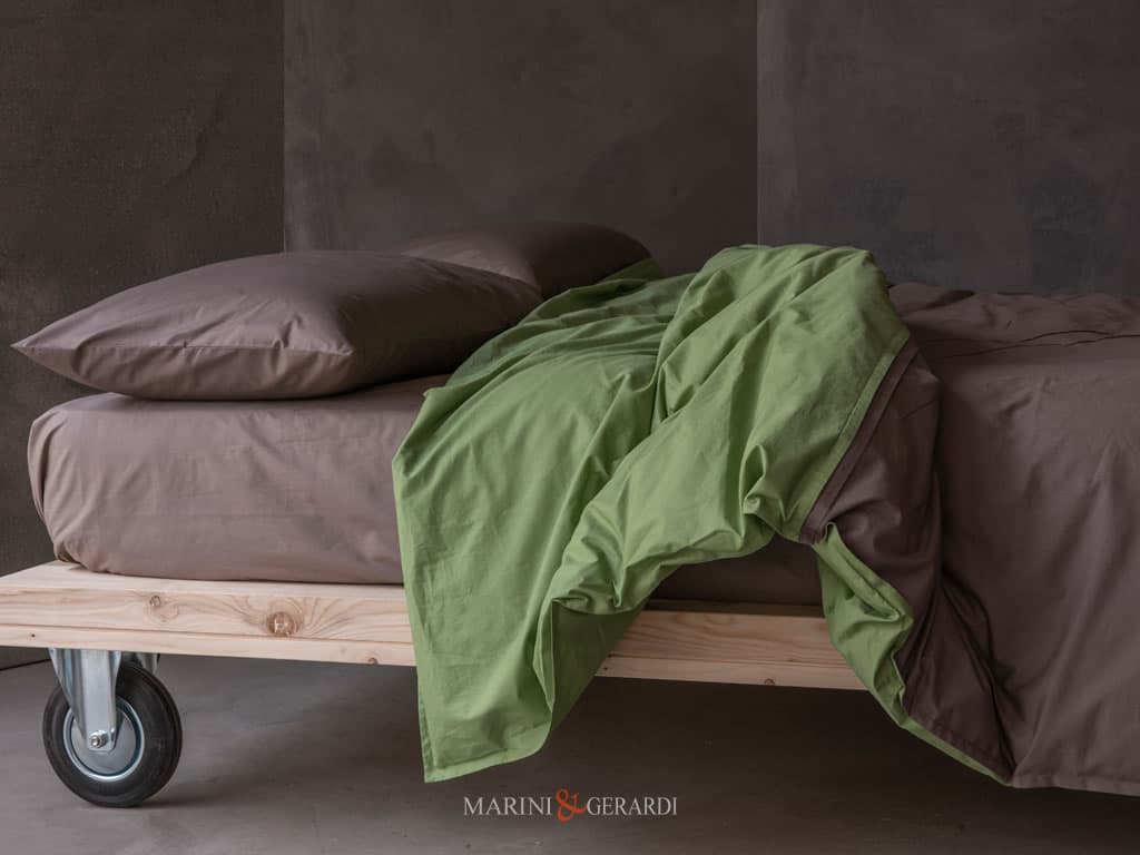 BORA 200 - Copripiumino Matrimoniale Percalle Verde Giada / Noce
