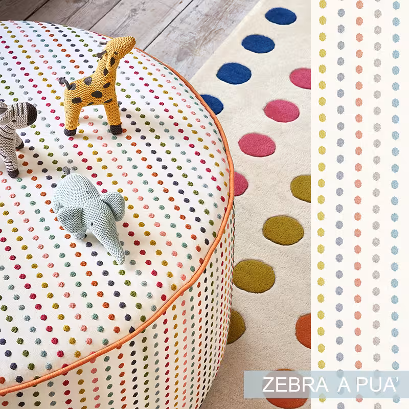 Chiudi gli occhi e sogna… Una stanza che sussurra dolci storie, un angolo accogliente dove i sogni prendono il volo! Con il tessuto Zebra a Pois, ogni cameretta si trasforma in un mondo di meraviglia, pronto ad accogliere risate, giochi e avventure.
