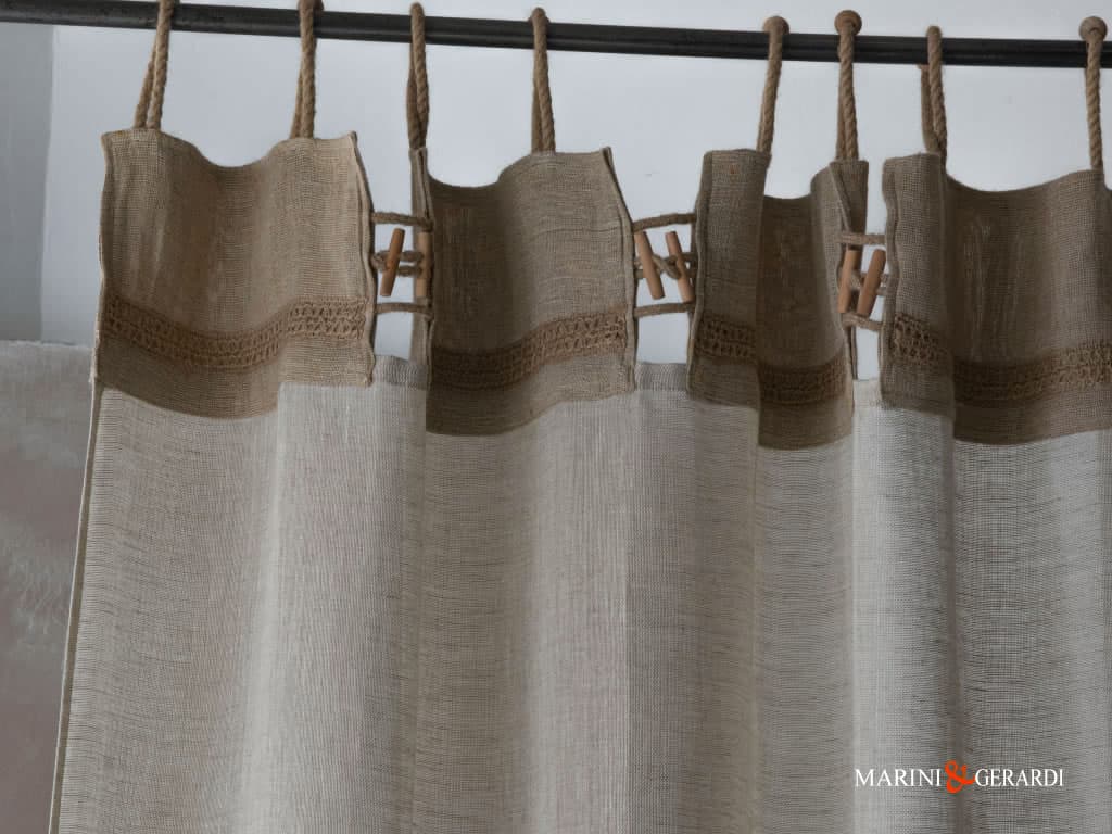 Tenda Lino Canapone Shabby Chic Con Passamaneria Juta Corda