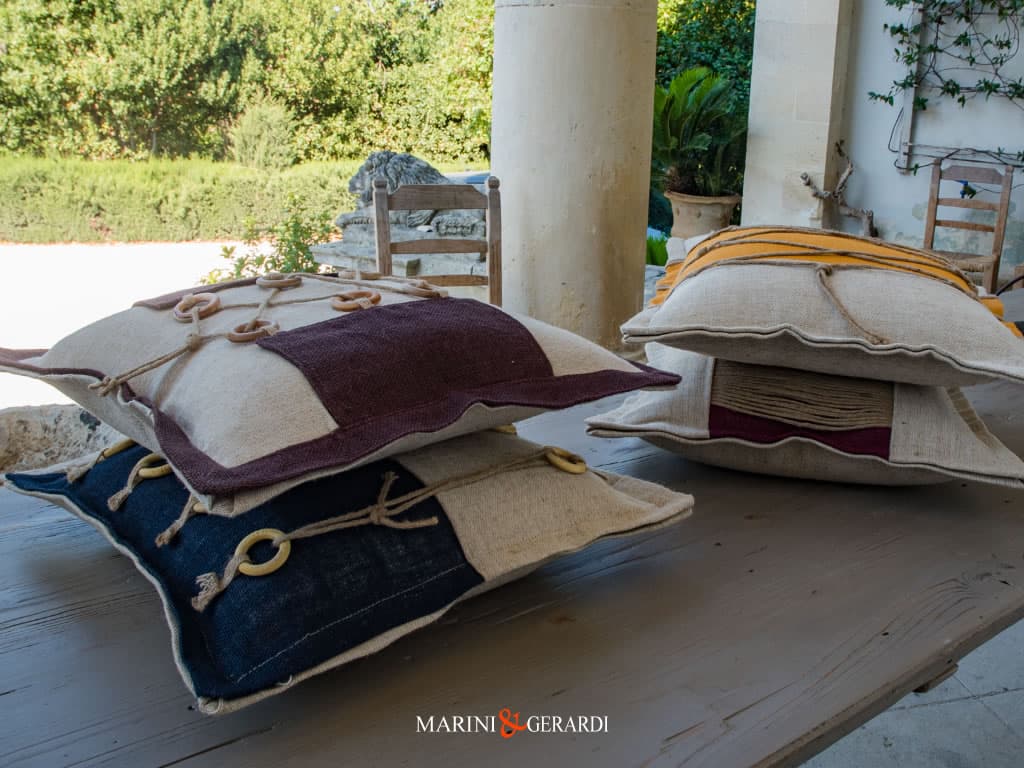 • Cuscini decorativi: in juta – applicazioni e accessori in corda e legno