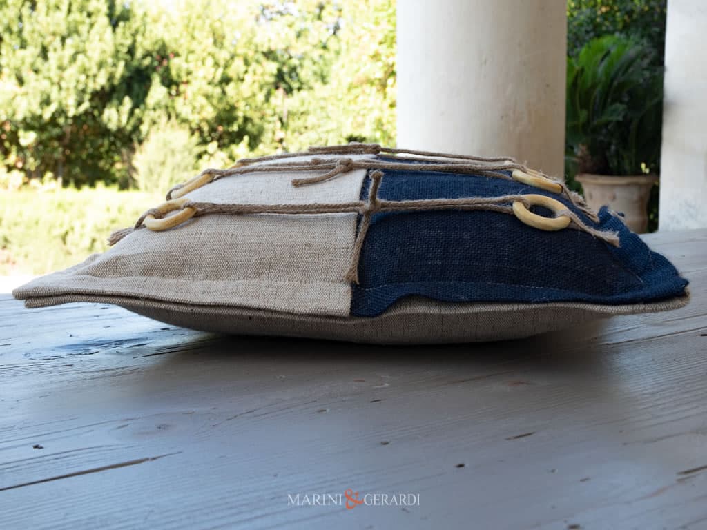 Cuscini Arredamento Juta Corda Anelli Legno CC017 Blu