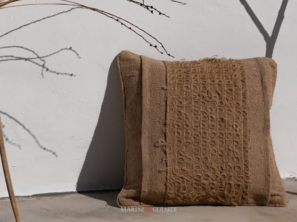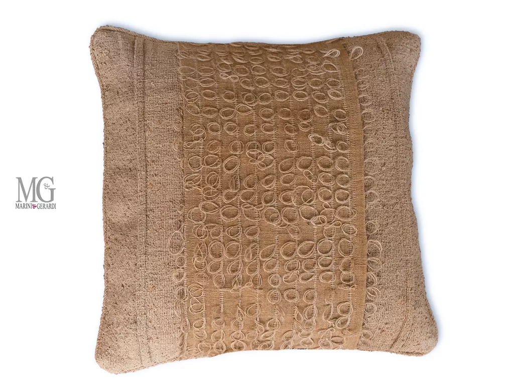 Cuscini decorativi realizzati a mano: Eventuali difformità e differenze nelle misure, colorazioni e decori non costituiscono difetto anzi sono dovute alle caratteristiche dei materiali e alla lavorazione artigianale degli stessi.