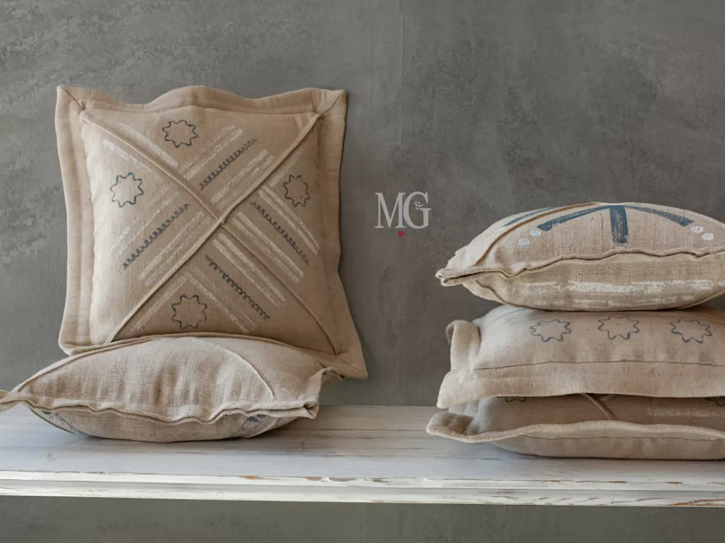 Cuscini con disegno realizzato a mano. Lo stile, in casa, è anche questione di dettagli.
