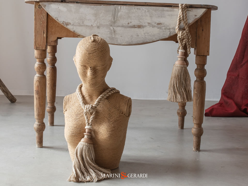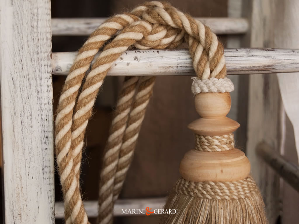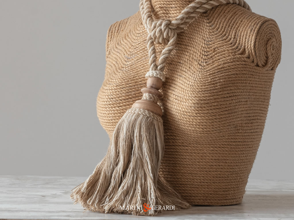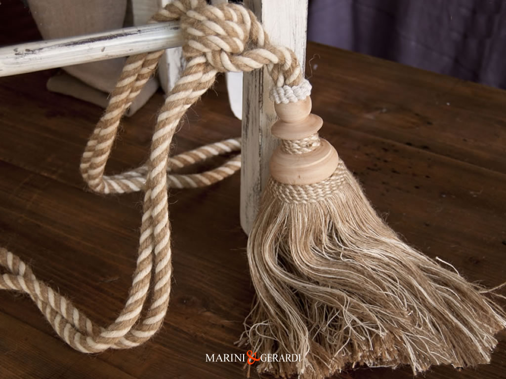 EMBRASSE 019 – Ferma tenda in cotone & Juta necessario per drappeggiare la tenda e va appeso al muro con un gancio. Embrasse particolari a Fiocco h. 26 cm Cordone 50 cm circa.