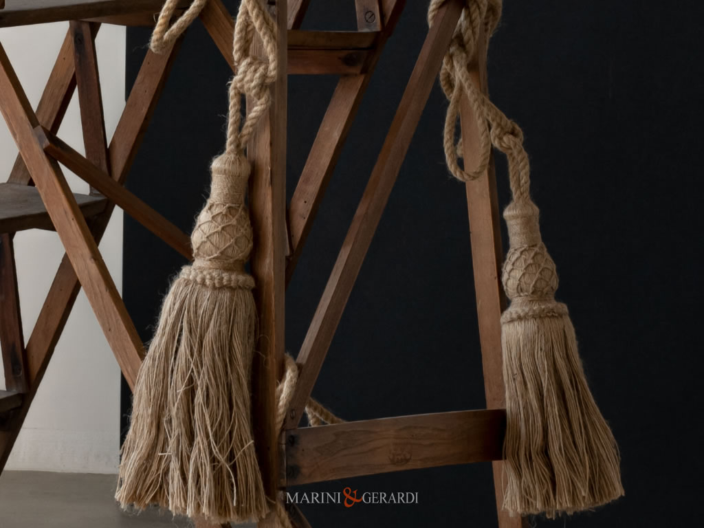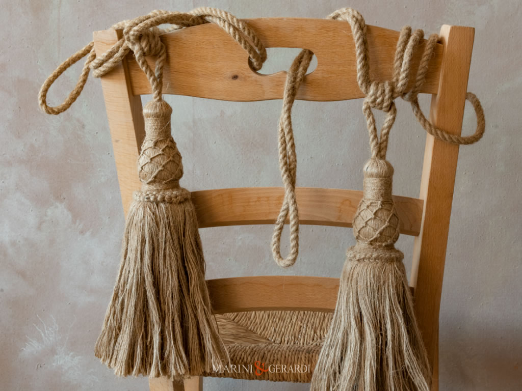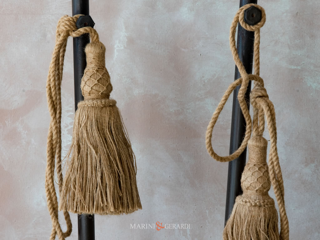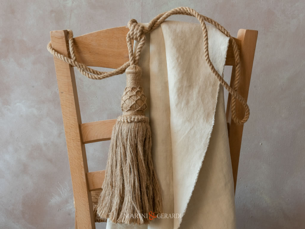 Caratteristiche delle nostre embrasse a fiocco con testa in legno tornito, in juta o cotone: