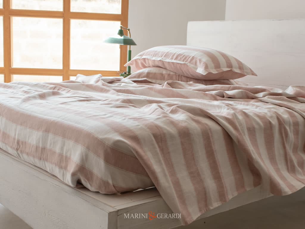 Federe cuscini letto a Righe Maxi un tessuto in lino prelavato indantrene di primissima qualità. La tradizione si fonde con il moderno, l’arte si fonde con la funzionalità, e il risultato è una creazione che ti abbraccia ogni notte. Love your bedroom!