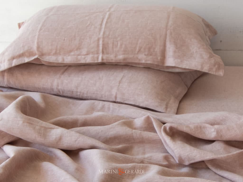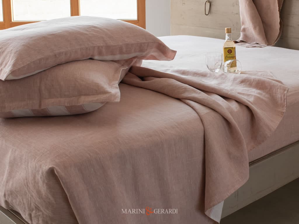 Parure Set Lenzuola In Lino Letto Matrimoniale Vino Rose