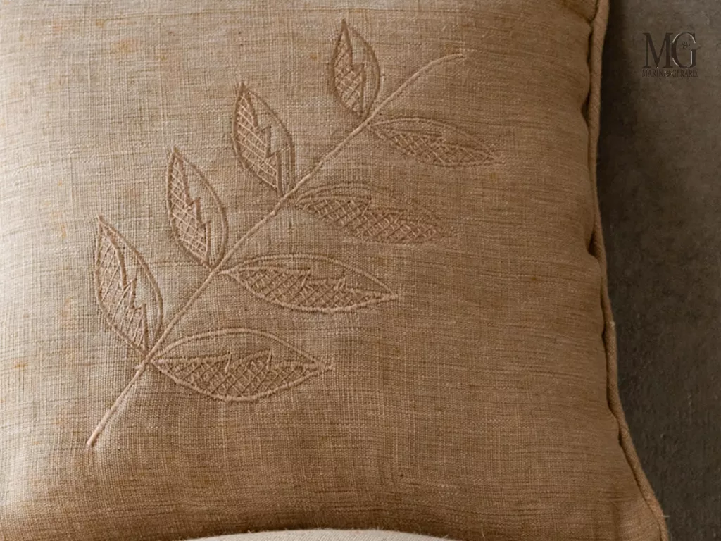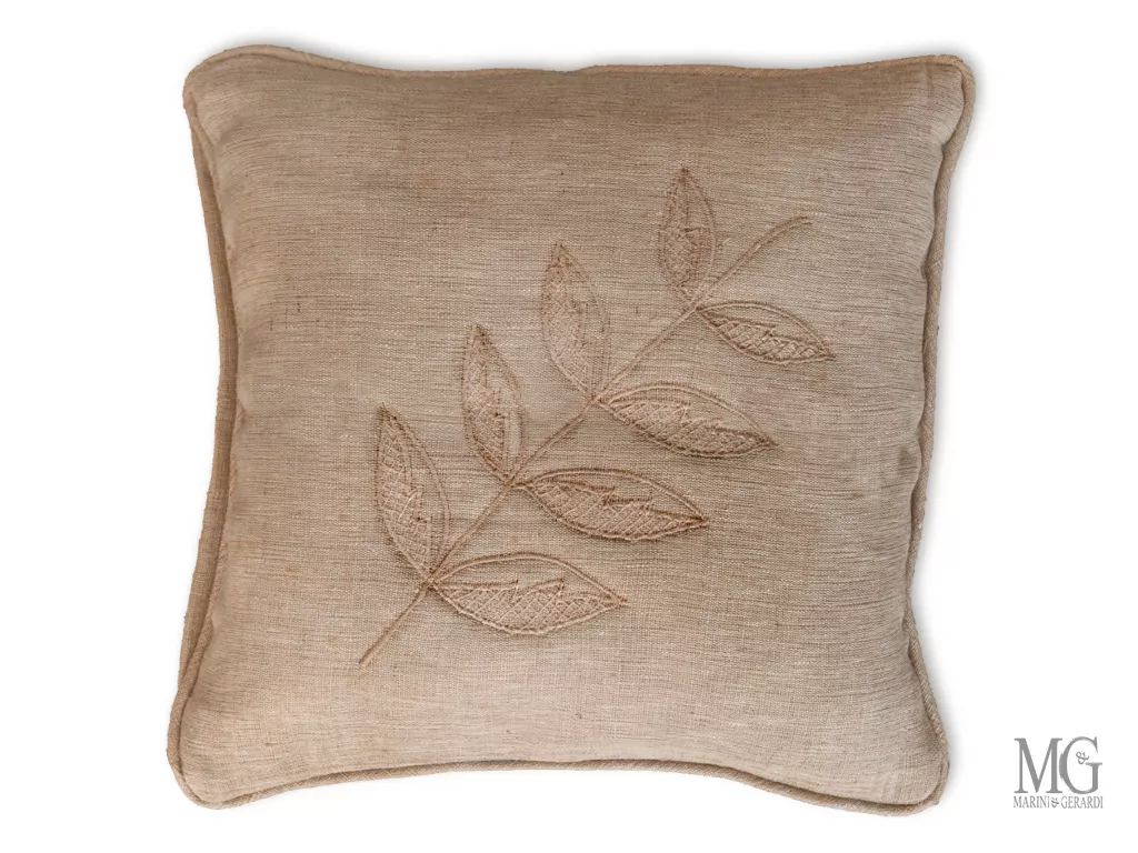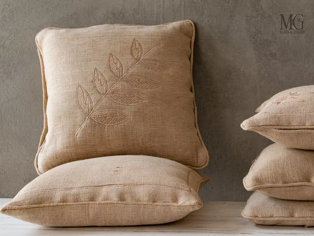 Fodera cuscini ricamo foglie in Juta e Cotone con Bordino / Piping – misura 50×50 – Produttore e Design Esclusivo Marini & Gerardi