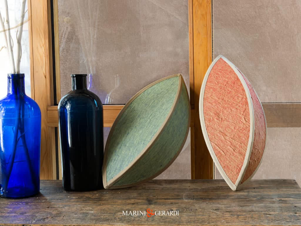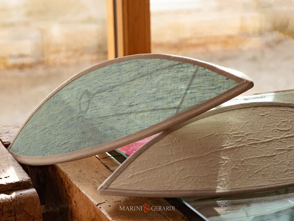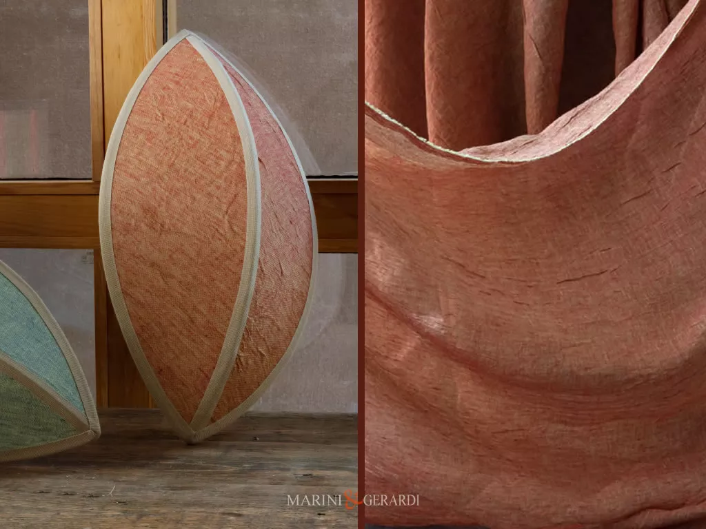 Diffusori design Foglia realizzati da una struttura metallica, rivestiti in tessuto di lino stropicciato a tinta  unita