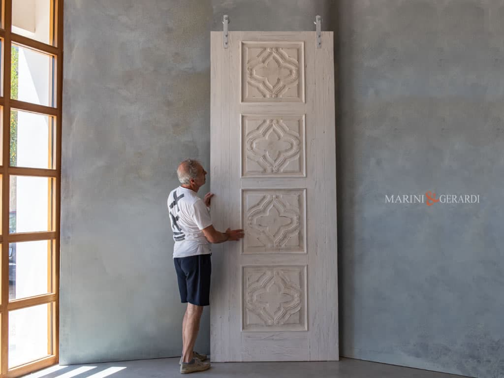 Grande Porta Pannelli Scolpiti Legno Massello Scorrevole Decapata Su Misura