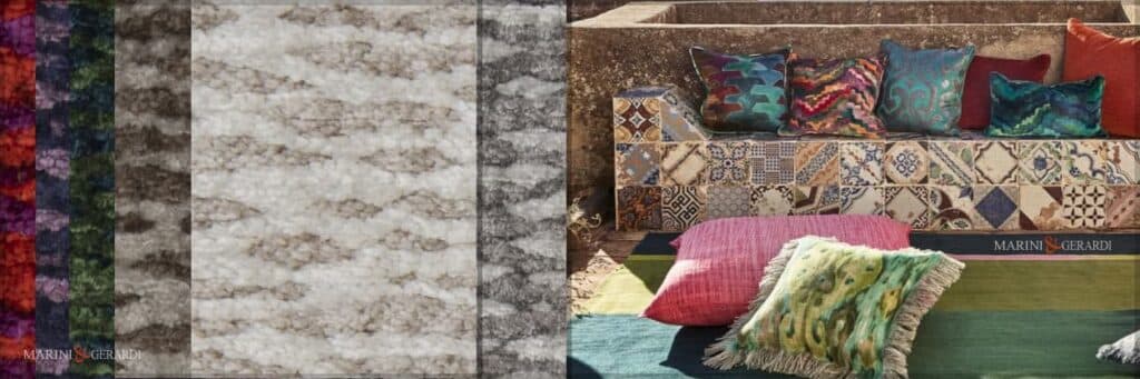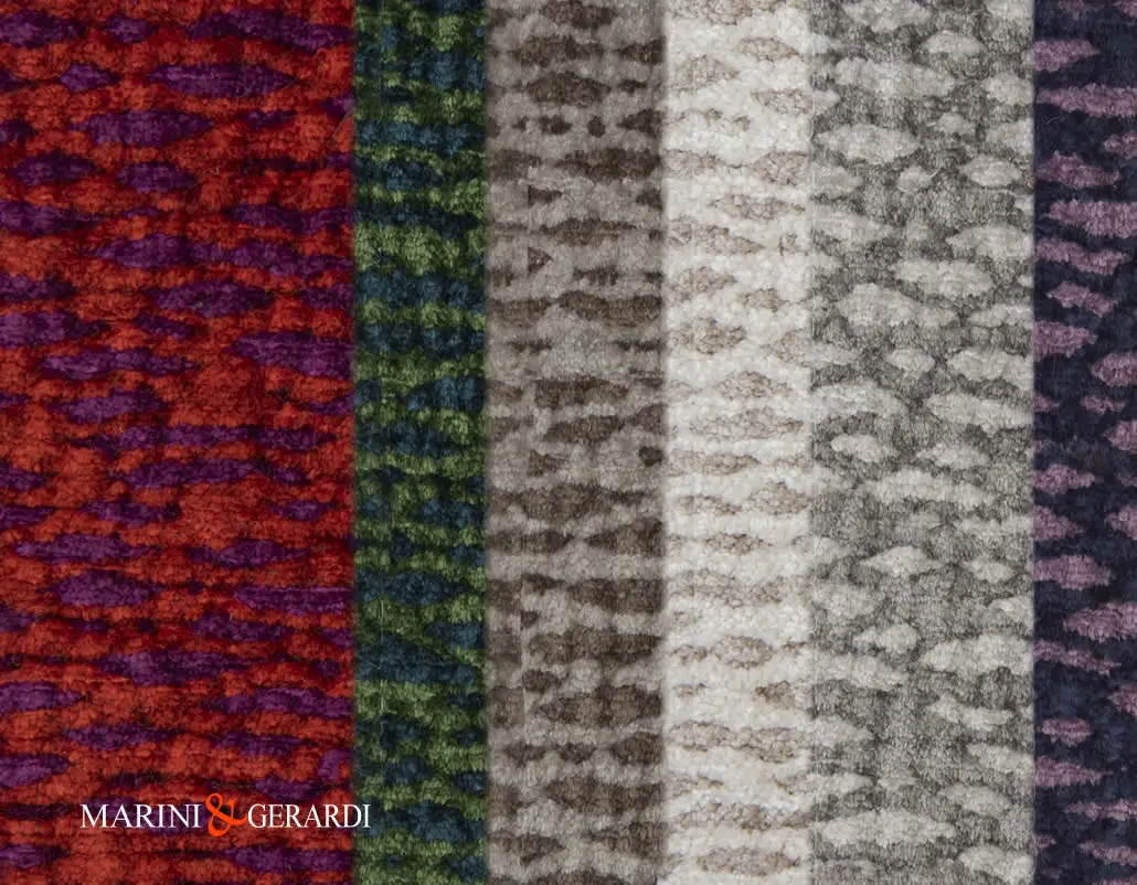 Tessuto Ciniglia per Divani di lusso Pantelleria Weaves by Zinc Textile. Tessuto moderno dal design esclusivo e contemporaneo. Arredo interni sofisticato dai colori audaci ispirato da elementi etnici e naturali.