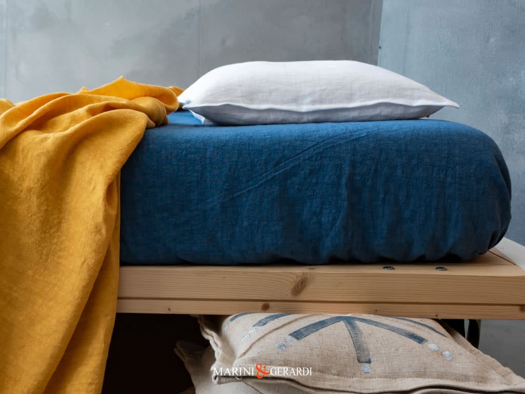Lenzuola con angoli una Piazza e Mezza in Lino Stropicciato Delavè Fresco e leggero al tatto. Questa Tessuto (No Stiro che puoi anche stirare) risulta soffice e piacevole al tatto, dall’aspetto luminoso chic. Colori Moda 2025