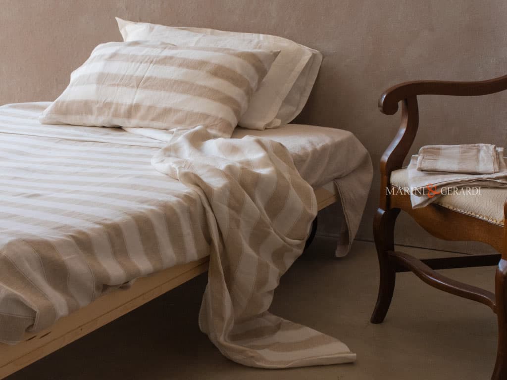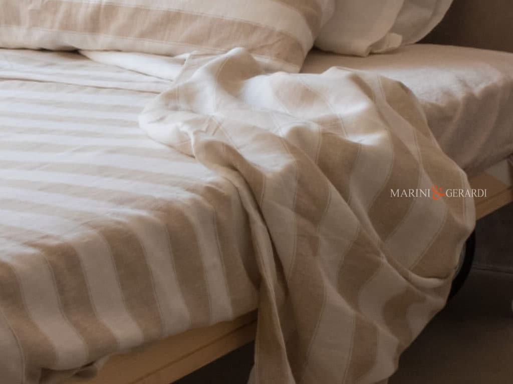 Questa offerta include un lenzuolo sotto Tinta Unita + uno lenzuolo sopra a righe e federe cuscino. Per altre misure o combinazioni colore contattate: assistenza@marinigerardi.it