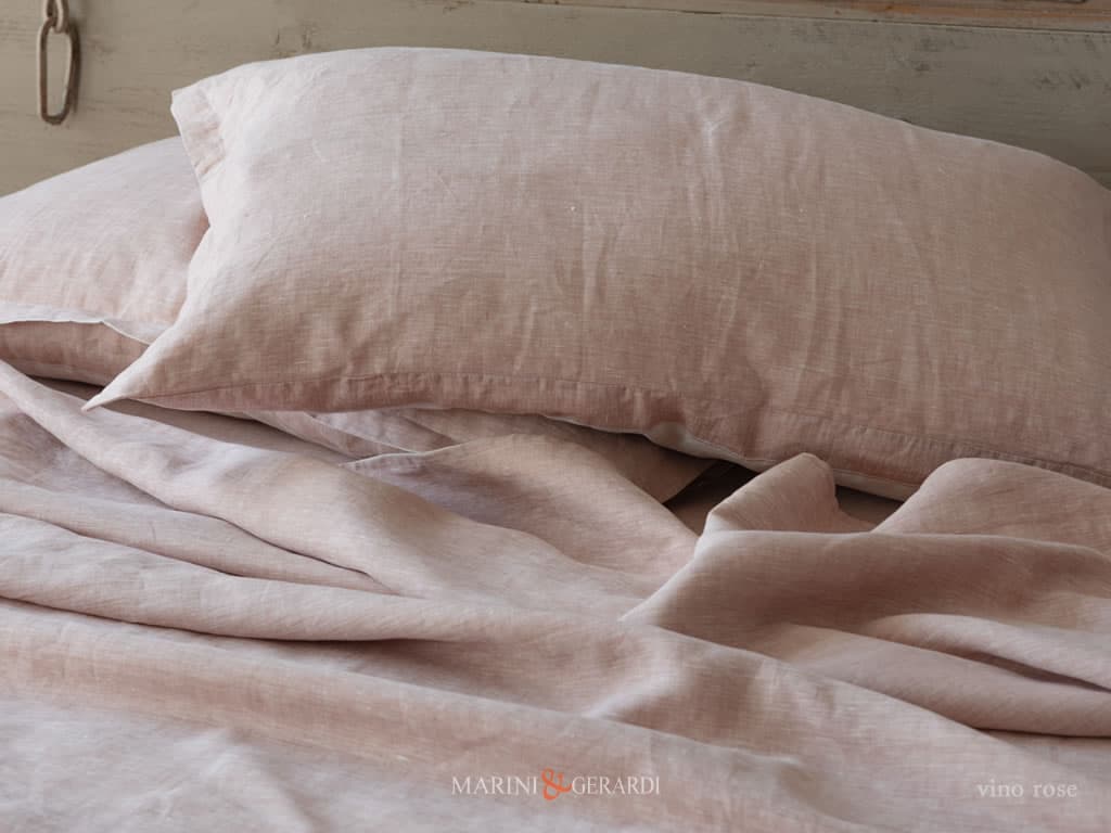 Parure Lenzuola Letto Singolo In Lino Tinta Unita Vino Rose