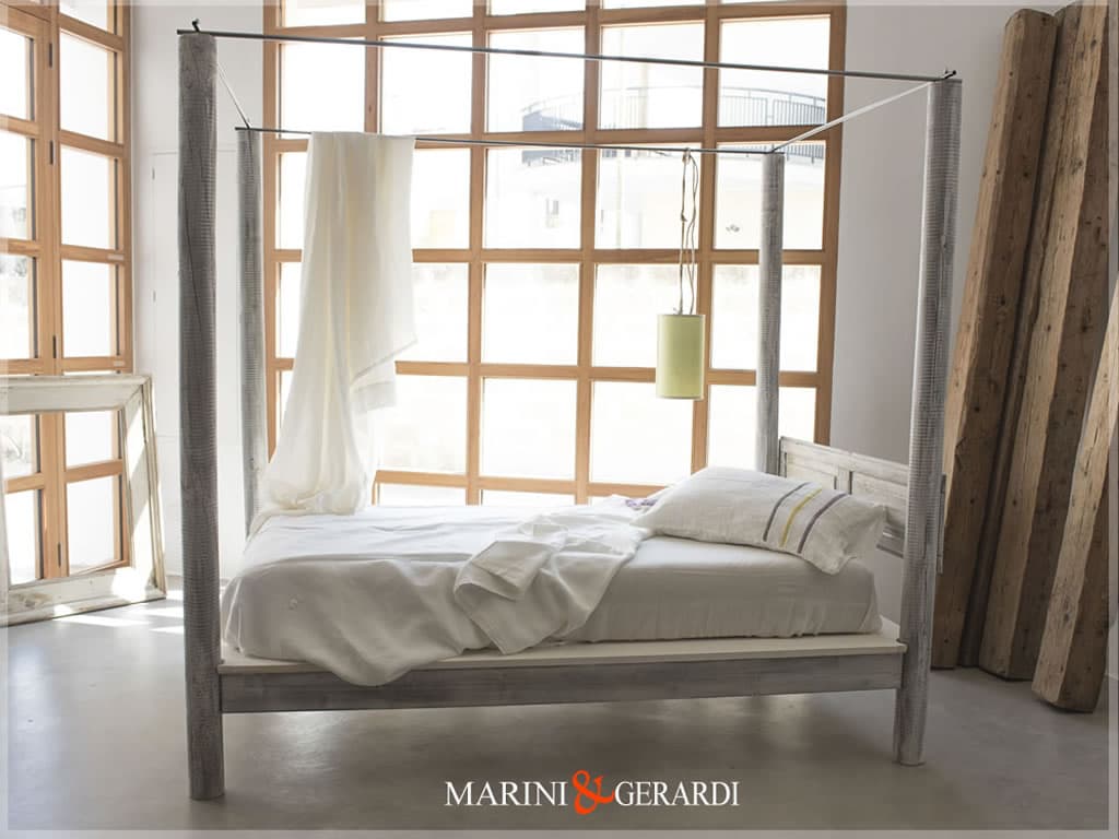 Letto a Baldacchino Shabby Chic - Letto artigianale in legno massello