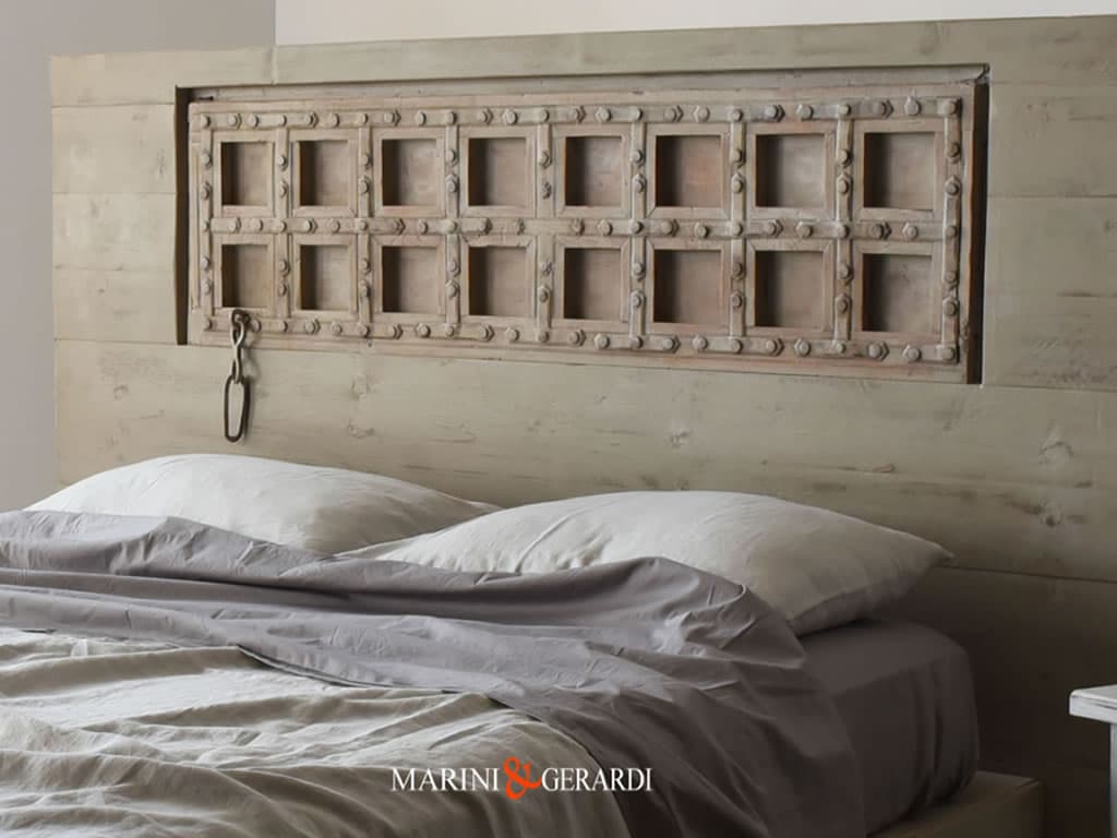 Testata Letto realizzata con porta da recupero unica ed originale by Marini & Gerardi. Montaggio con ferramenta di manifattura artigianale. Inoltre, realizziamo prodotti similari su misura in legno massello decapato. Porte personalizzate in legno naturale o decapato con finitura a cera.