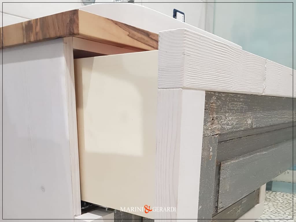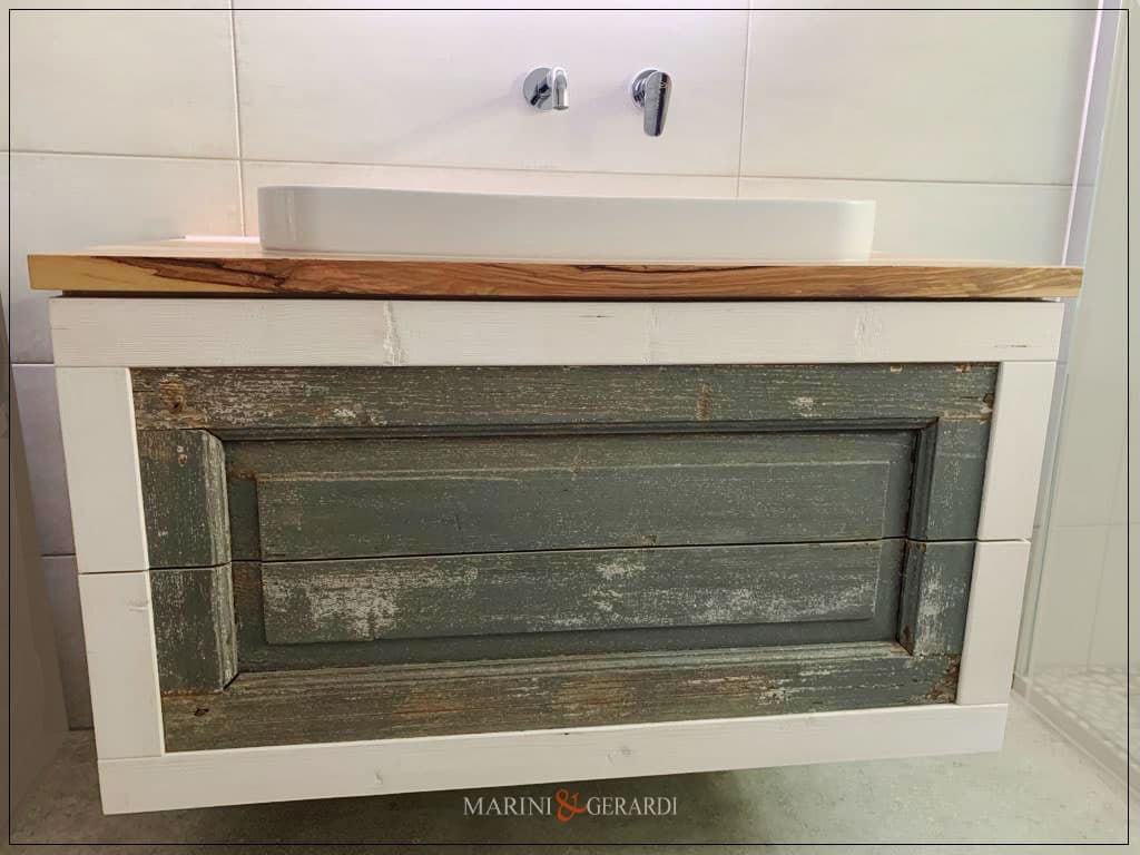 cassettiera bagno artigianale con anta vecchia shabby