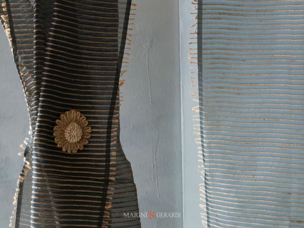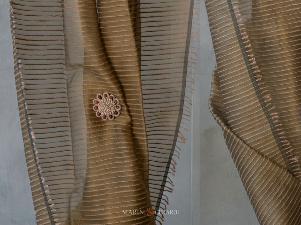 - Top Asole a Torretta – Organza in seta con inserti in juta.