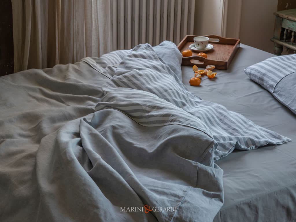 Set Copripiumino Singolo Lino Lavato a Righe
