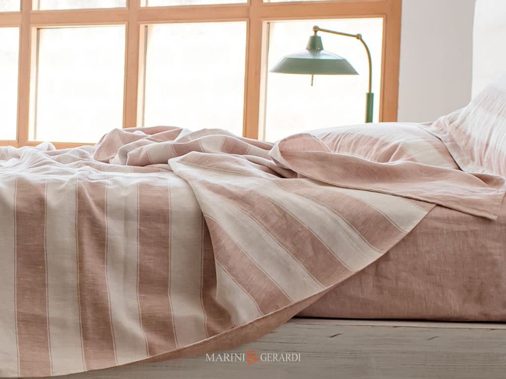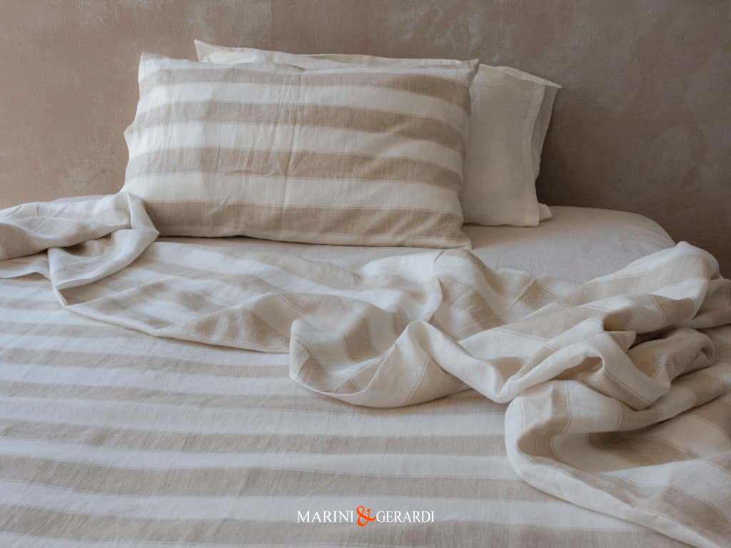 Biancheria letto lenzuola federe tessuto lino a righe cappuccino