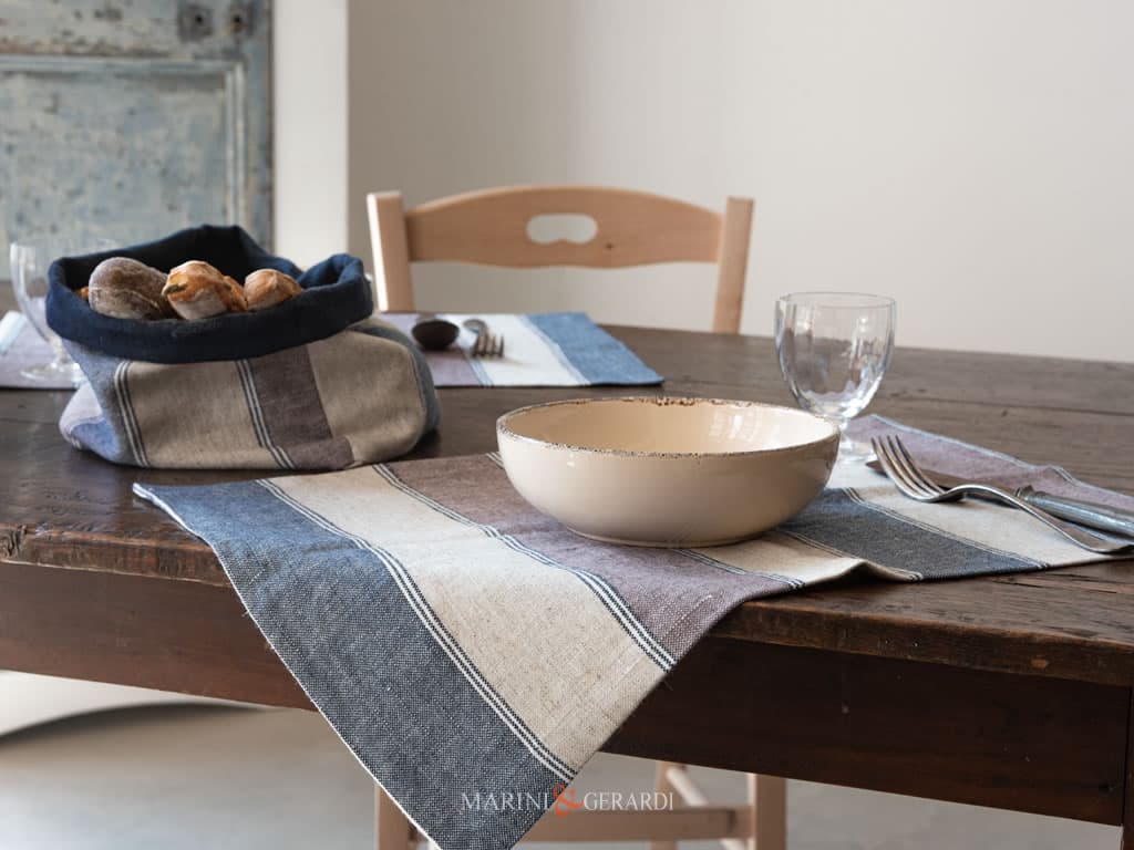 Tovagliette Americane Jaquard a righe in Misto Lino cucita sartorialmente nel nostro laboratorio al momento dell’ordine. Tovagliette perfette, dal giusto peso e adatte per la tua prima colazione. Da utilizzare in modo veloce e pratico per una pranzo o cena tra amici.
