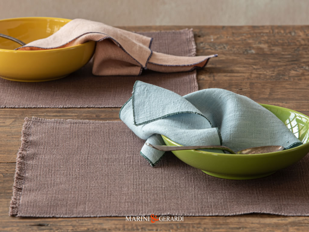 • Tessuto Tovaglioli: 100% lino grezzo naturale.