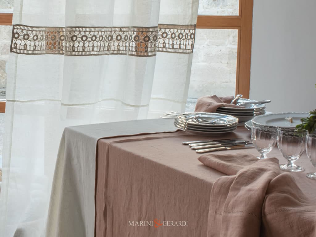 Tovaglia Elegante Moderna In Lino Salmone Con Tenda Bianca