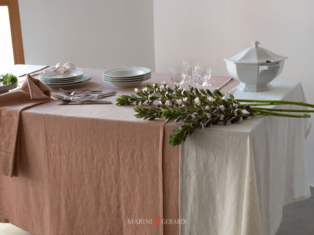 SIVIGLIA – Tovaglia lino 100% di grande pregio e qualità a trama fitta e strutturata, luminoso e piccoli nodi che gli danno un tono casual chic, con effetto corposo e delicato al tatto.