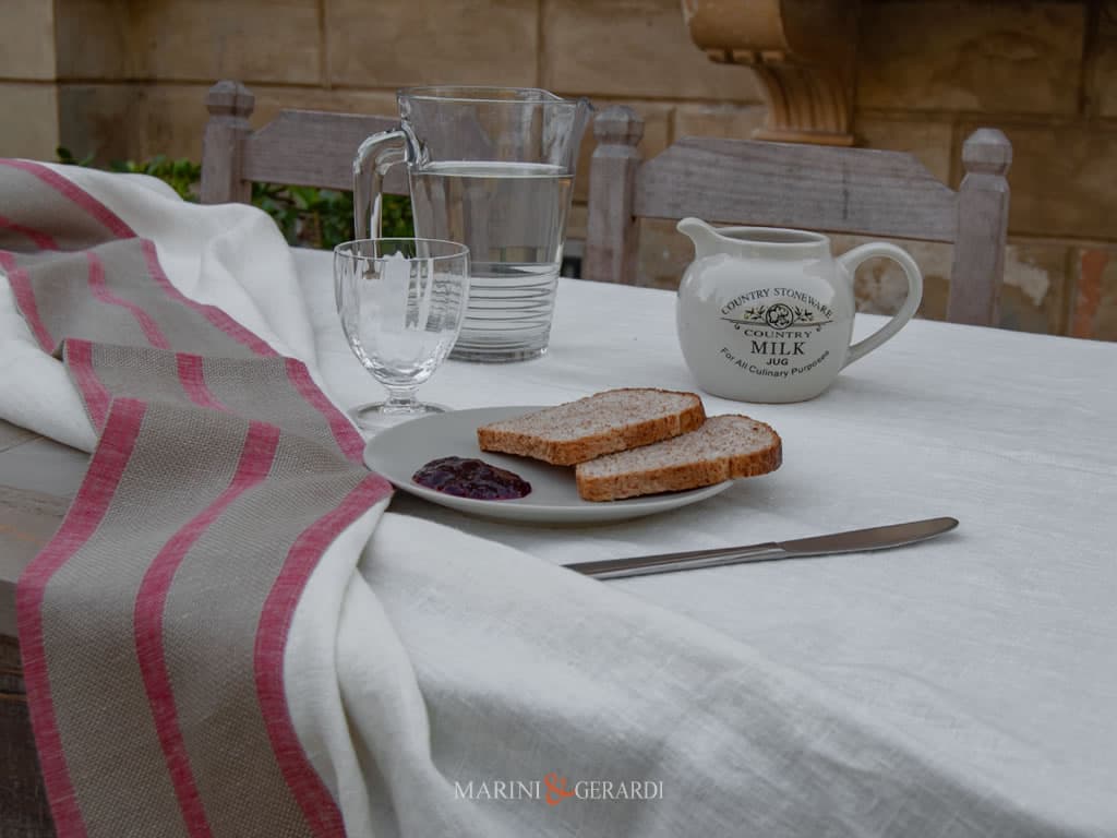 Ogni tovaglia è cucita sartorialmente nel nostro laboratorio al momento dell’ordine.