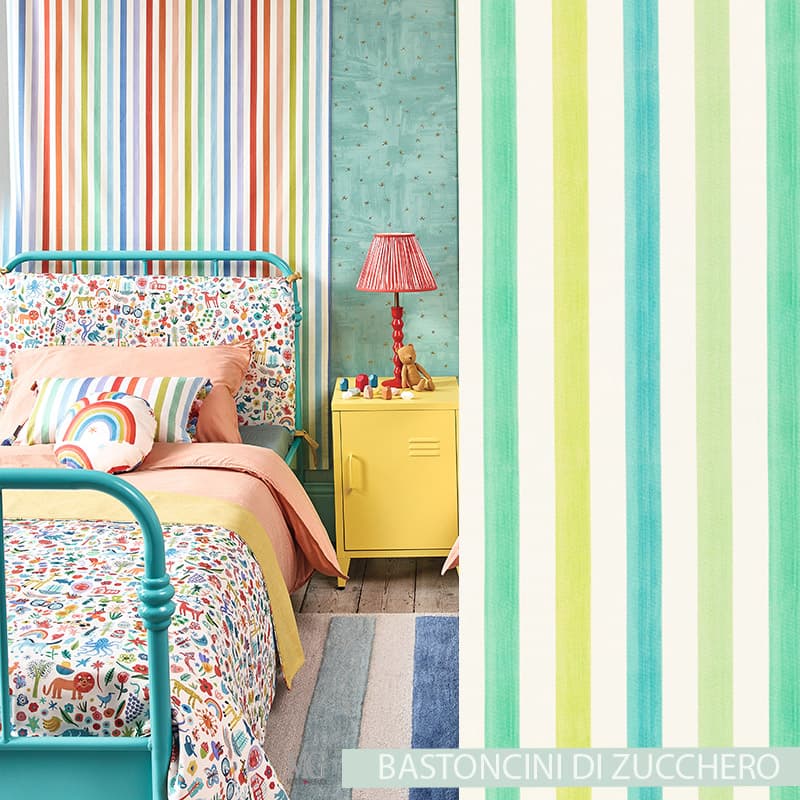 Con Bastoncini di Zucchero in 4 colorazioni, stoffa a righe per arredo in Cotone ogni giorno diventa un’avventura straordinaria, un viaggio nel mondo della creatività dove i piccoli possono sognare, giocare e crescere felici.