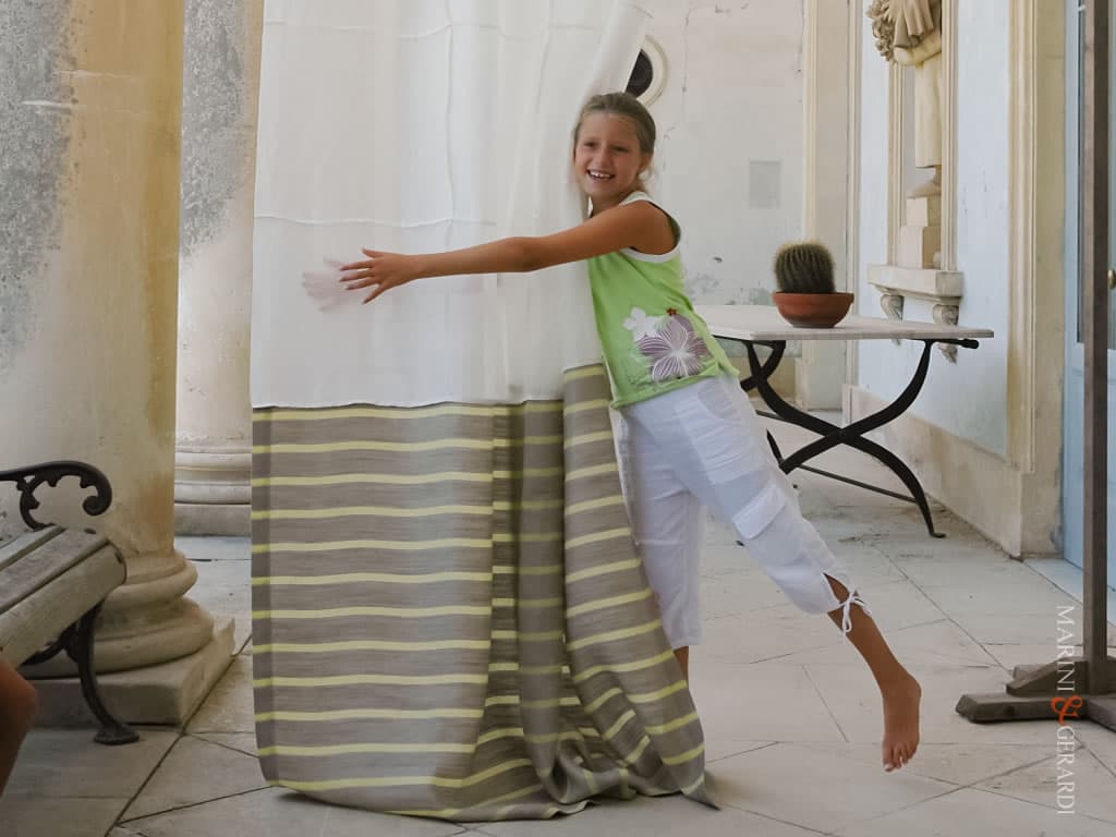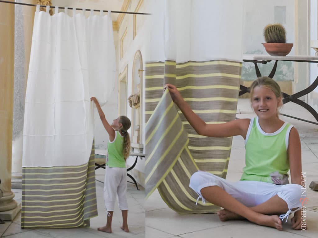 La Tenda Soggiorno Corsano è più di un semplice elemento d’arredo; è un viaggio sensoriale nel cuore dell’Italia, dove il puro lino italiano diventa il protagonista di un racconto fatto di tradizione, qualità e bellezza senza tempo.
