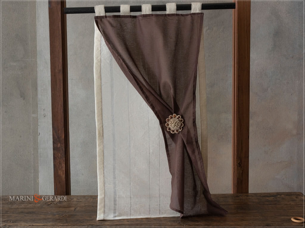 Tende a vetro realizzate con tessuto in puro lino garzato impreziosite da un velo in organza a trama trasparente e delicata. I tessuti utilizzati rendono bello, piacevole ed elegantemente unico il risultato finale.