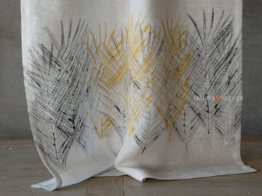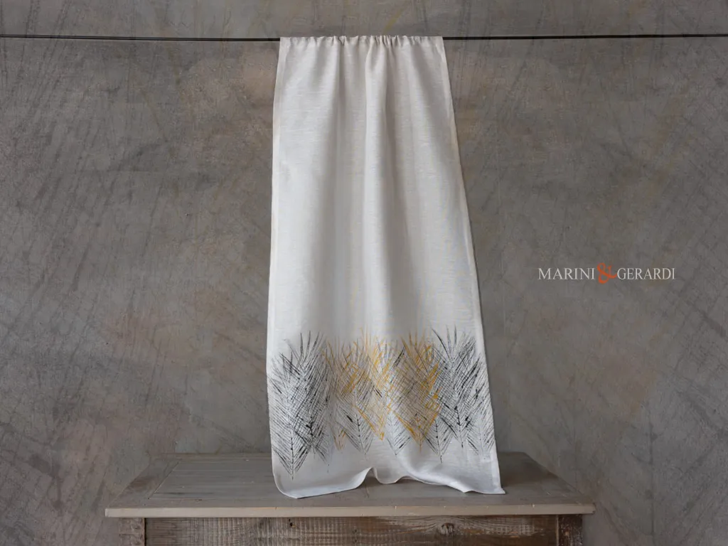 SPIGHE NERE GIALLE – Tende a Vetro Porta Finestra Cucina Made in Italy dall’aspetto fresco e naturale realizzate con tessuto in puro lino impreziosite da un Design tinto in capo nel nostro laboratorio (ogni leggera difformità del disegno è da considerarsi una peculiarità unica), inoltre una trama trasparente e delicata del tessuto ne esalta le naturali qualità. Le tende moderne per cucina a vetro sono accessori di arredo importanti che uniscono funzionalità ed estetica, esprimono, stile e personalità di chi la abita.