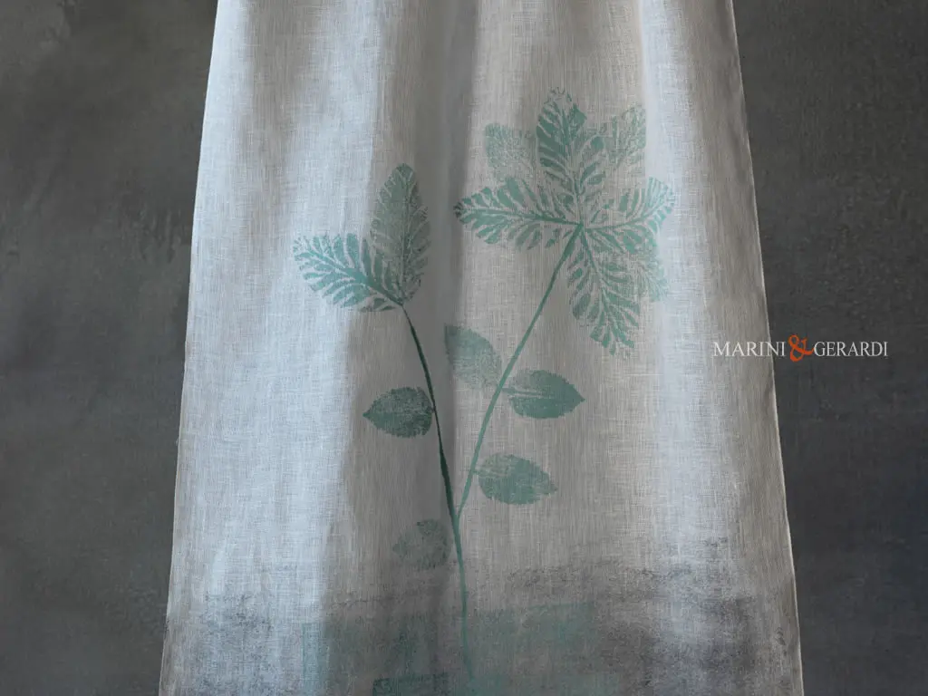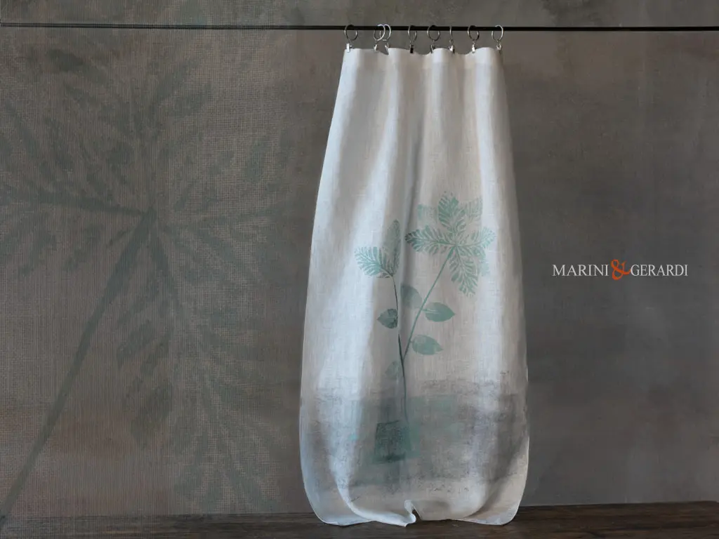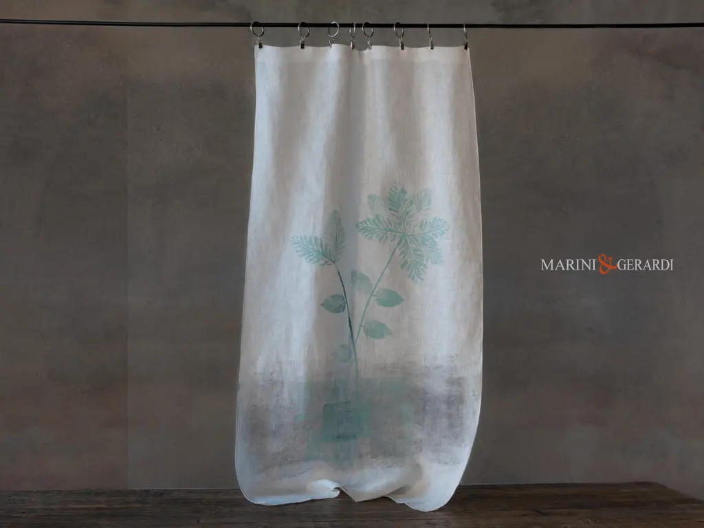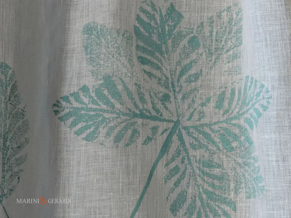Tende da finestra a vetro in puro lino bianco con design verde acqua tiffany - Marini e Gerardi