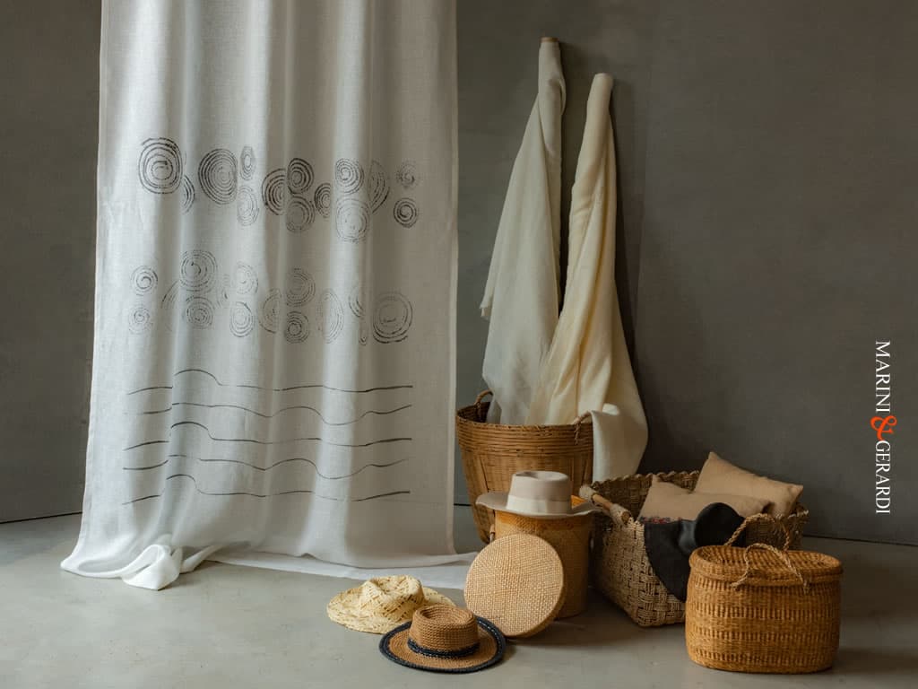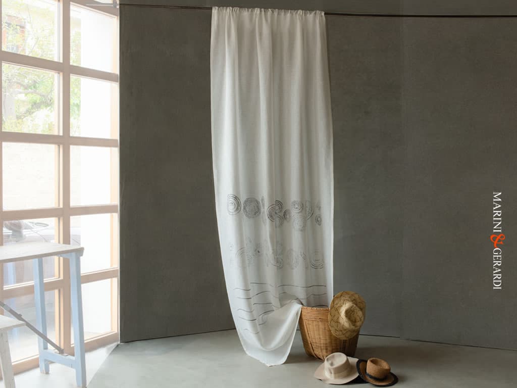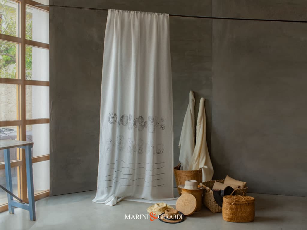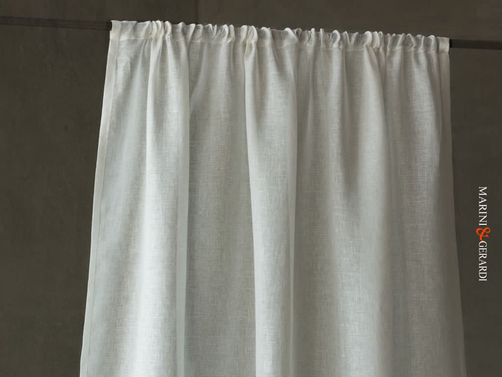 Tende in puro lino che offrono luminosità e delicatezza, ideali per creare un’atmosfera accogliente senza sacrificare la luce naturale. Proteggono dagli sguardi indiscreti, mantenendo una piacevole luminosità negli ambienti domestici. Disponibili non solo in bianco, ma anche in tonalità chiare che avvolgono la stanza con un tocco magico e delicato.