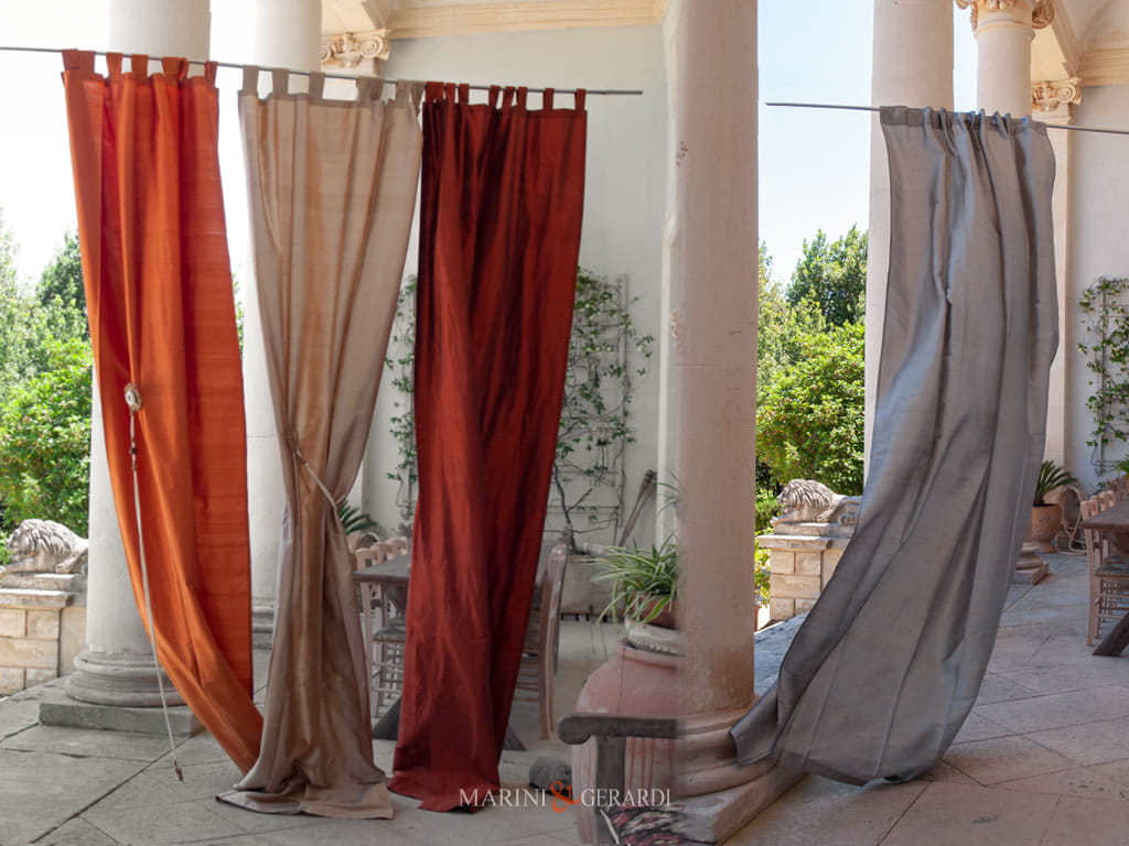 Tende di seta realizzate con tessuto Shantung o “DUPIONI SILK” dalla Mano Morbida e croccante con una struttura compatta.