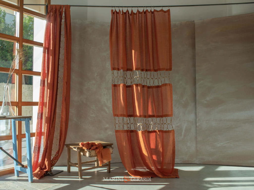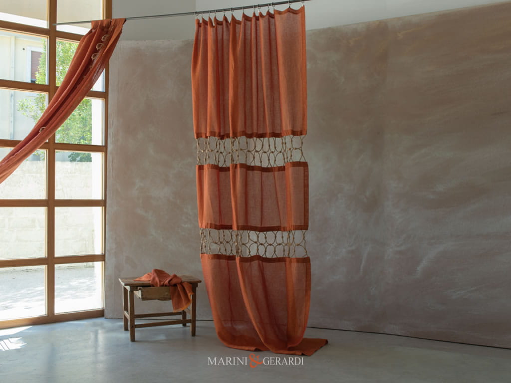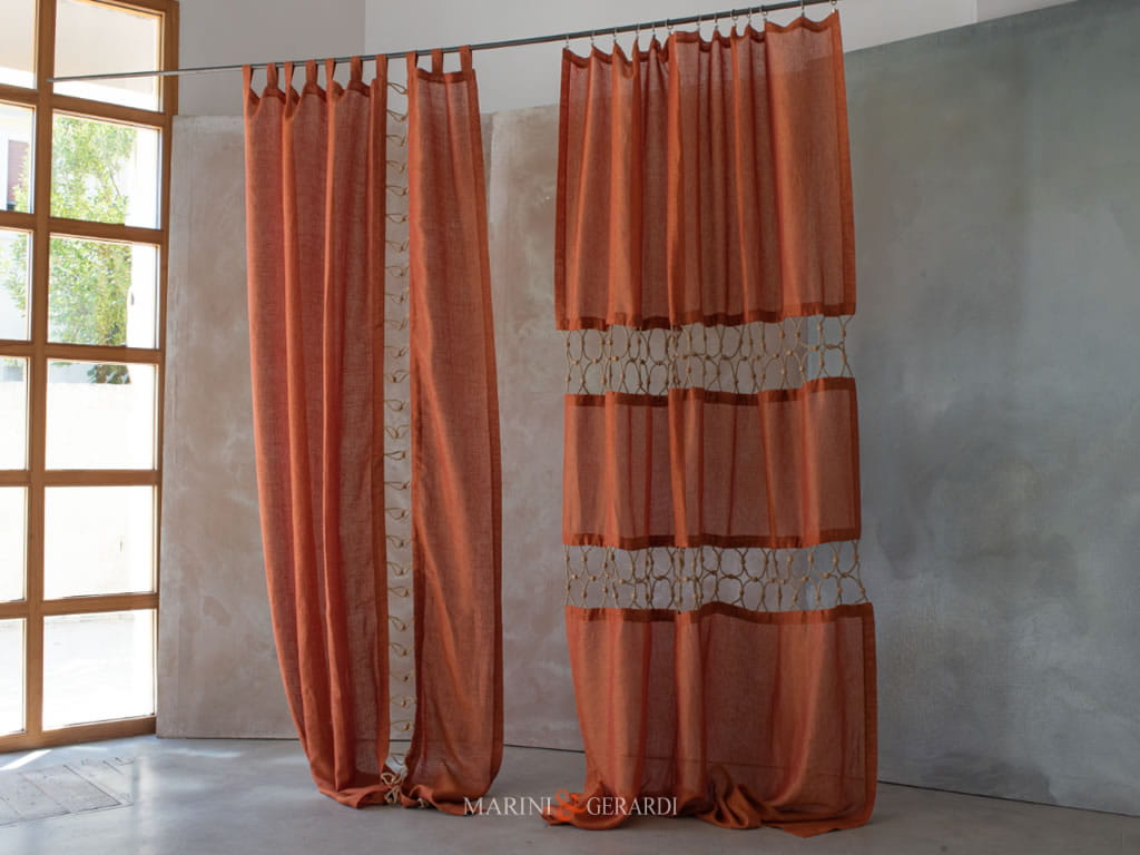 TESEO – Tende interni moderne in lino a doppia Frangia shabby chic.