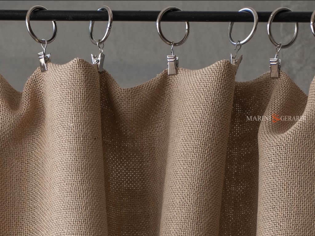 - Opzione 2 – Tendine a vetro con con clips e anelli in alto e tunel da 2 cm. in basso.