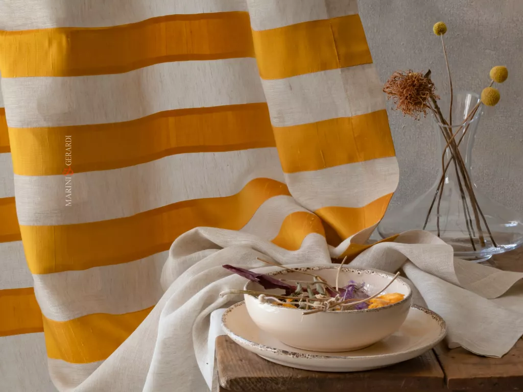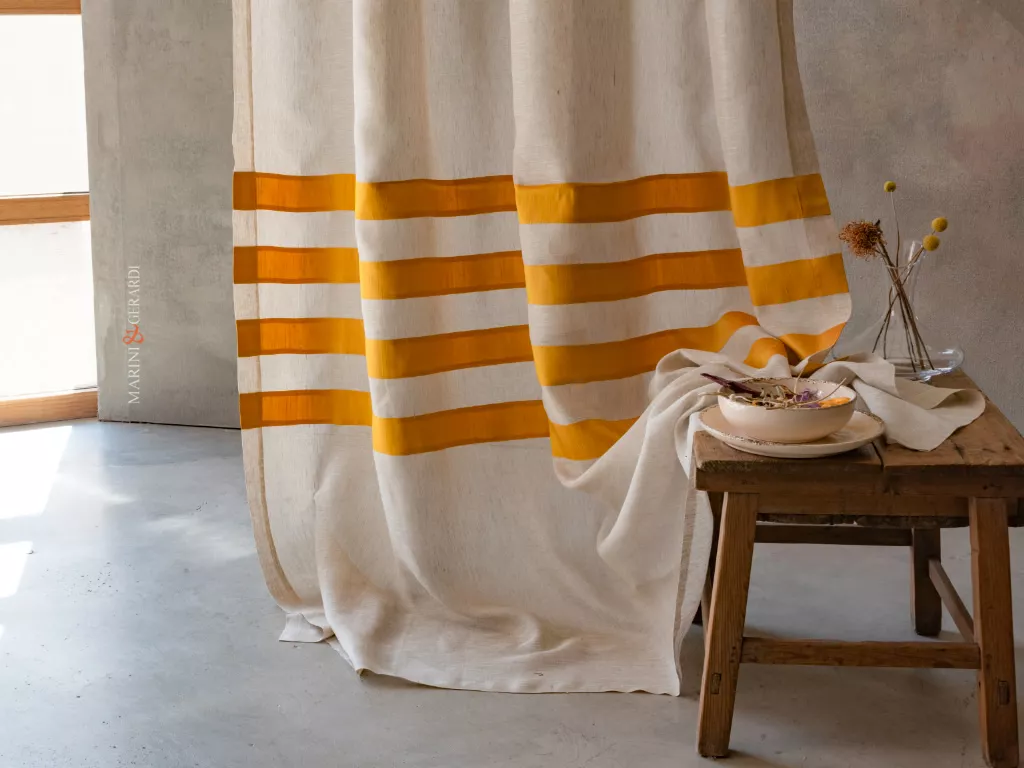 EGIZIANA – Tende per interni in lino con applicazioni altamente sartoriali in lino e seta