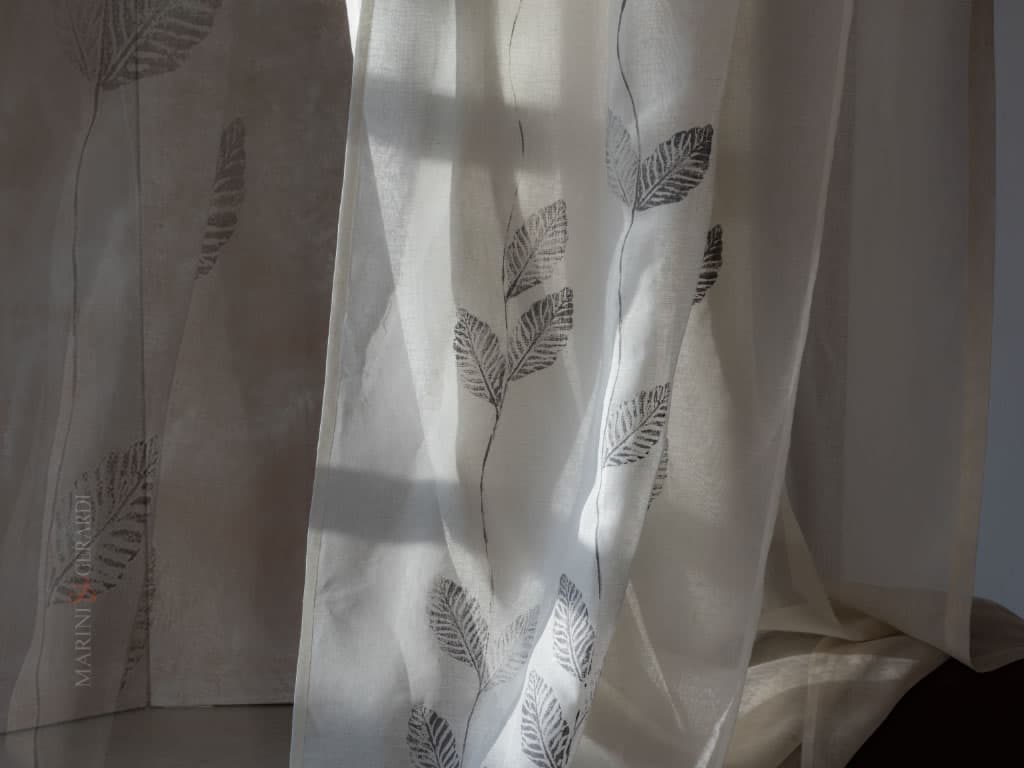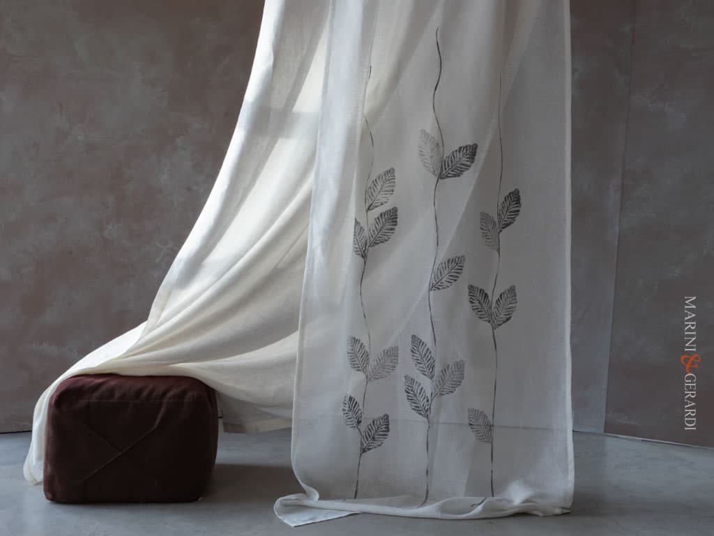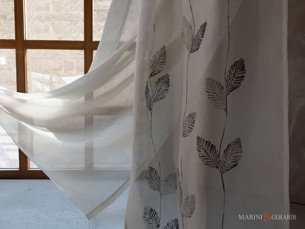 Tenda Interni Minerva Con Tessuto.bianco Filtrante In Lino Design Foglie
