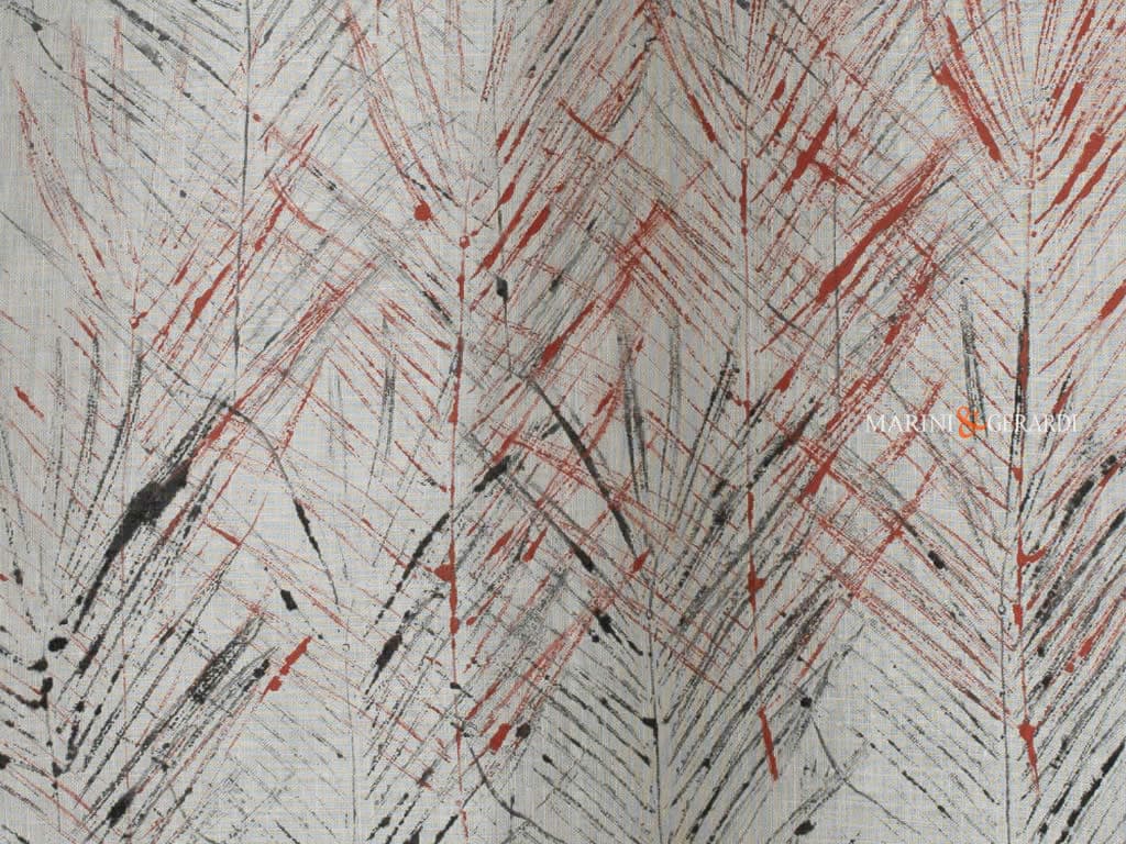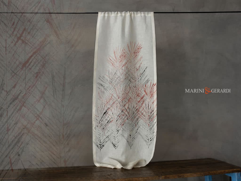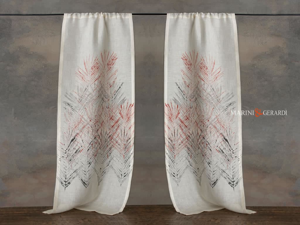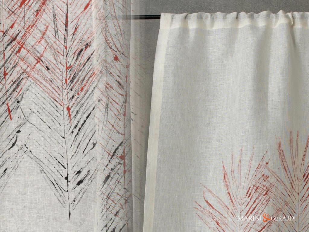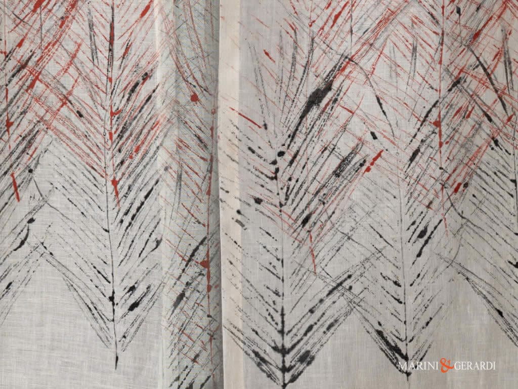A SUD – Tende per Vetrate Panoramiche Moderne in Lino design in rosso e nero – Tende disponibili nei colori Bianco Ottico, Bianco Naturale, Panna, Grigio + un Design unico tinto in capo  realizzato in proporzione alla misura selezionata.