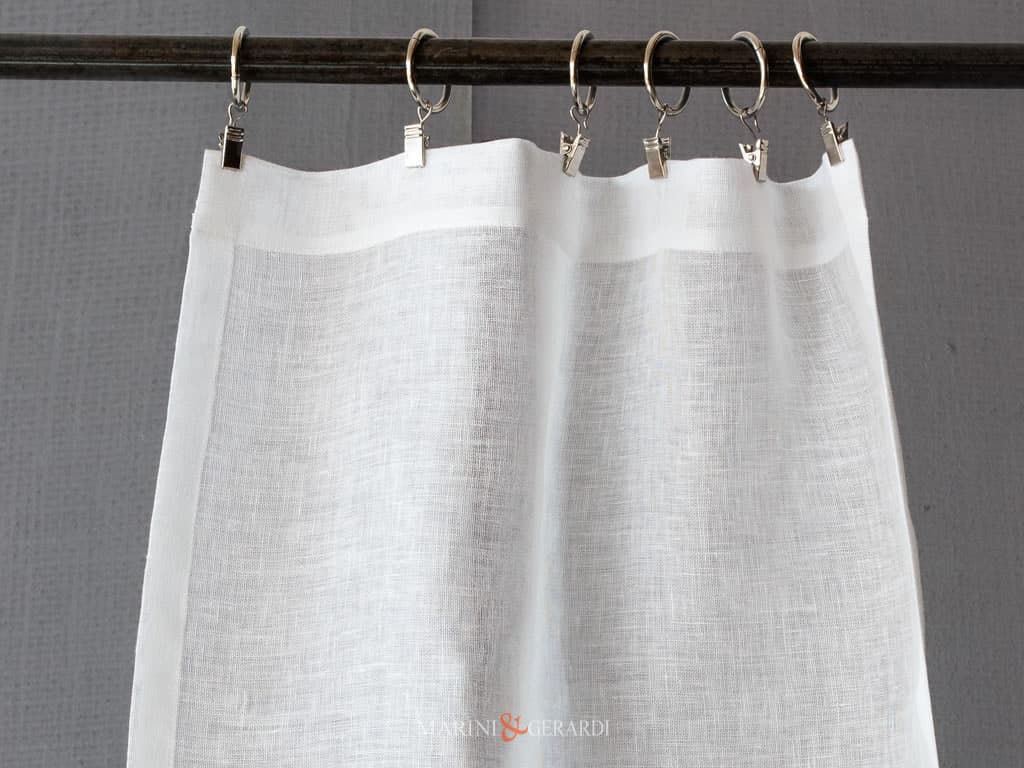 • Opzione 3 – Tendine a vetro con clips ad anelli in acciaio in alto e tunnel da 2 cm. in basso;